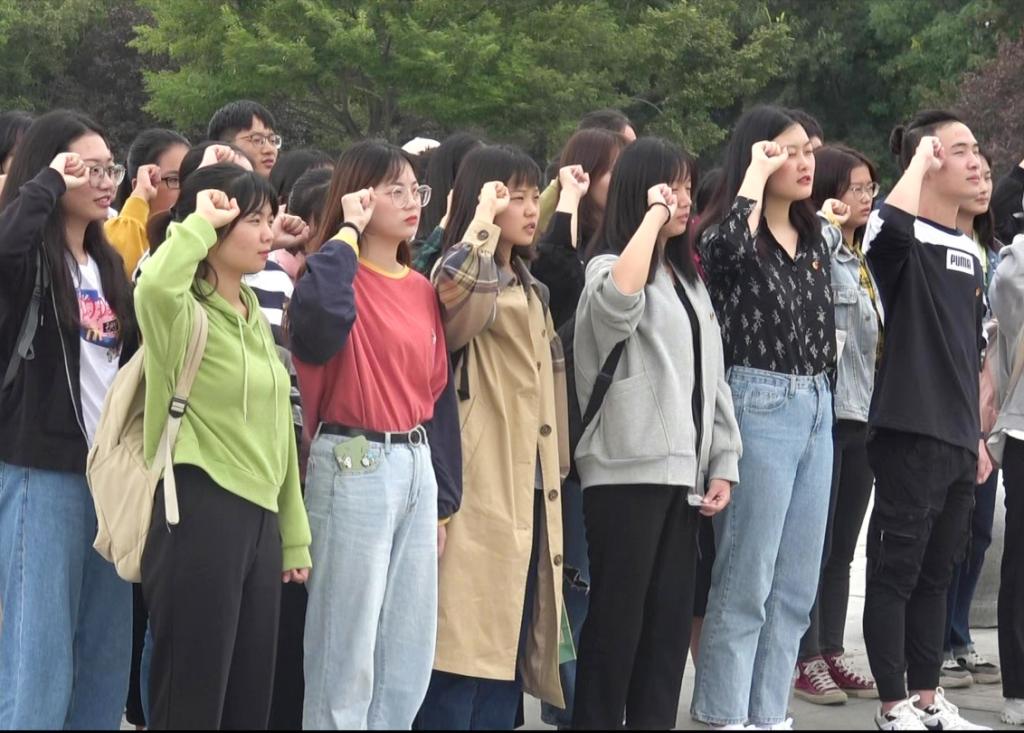 第四项,齐唱团歌。“我们是五月的花海,用青春拥抱时代。我们是初升的太阳,用生命点燃未来”,在一声声清脆悠扬的团歌歌声中,本次升旗仪式和国旗下的演讲已接近尾声。大家齐唱团歌,心潮澎湃,仿佛又回想起当年刚入团时的场景,当初自己的信念,自己的意愿,自己的承诺再次涌现脑海,它一遍遍鞭挞着,促使我们更加努力与勤奋,无愧于共青团员的称号,无愧于国家的栽培,无愧于恩师的引导与教诲。