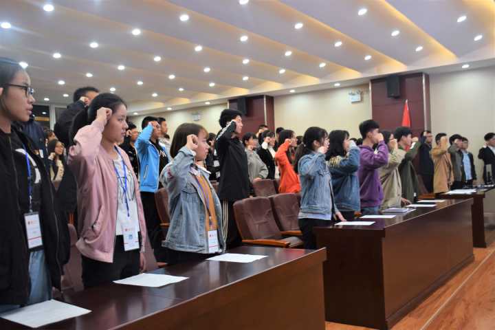 仪式在庄严的国际歌中拉开帷幕。首先,苏鹏作2017-2018年度团学工作汇报,并对2018-2019学年团委工作进行了规划。