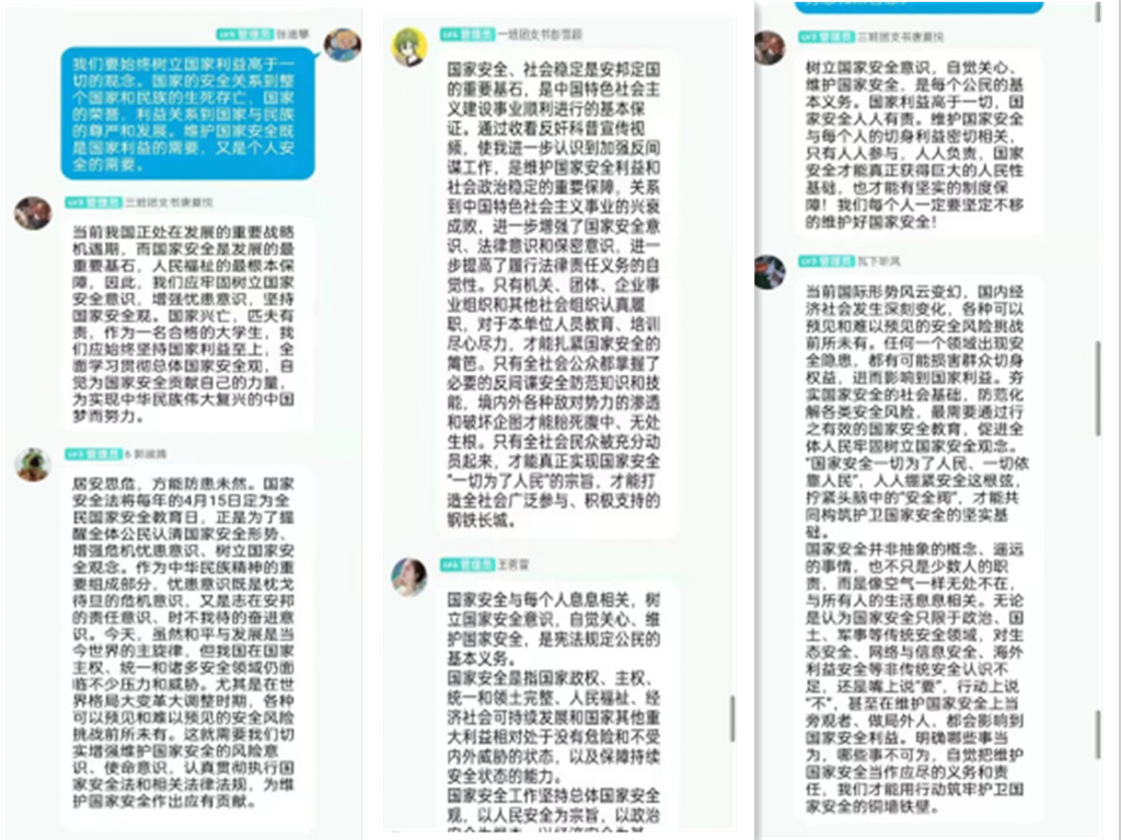 为准确掌握国家安全形势变化的新特点新趋势,了解国家安全面临的新问题新挑战,公司组织相关人员线上观看了孙君建副董事长作的“全面践行总体国家安全观,推进国家安全教育体系化建设”的主题辅导报告。与此同时,公司结合疫情防控的要求,利用线上、线下多种渠道,组织各年级召开以国家安全教育为主题的班会,以“关于全民国家安全教育日”“什么是国家安全”“了解破坏国家安全的行为”“维护国家安全,从每个人做起”等主要内容开展国家安全教育系列活动,并观看国家安全教育相关视频,期间同学们就活动主题展开了激烈讨论,从不同角度表达了自己的看法。此外,公司于4月15日上午组织员工代表于公司二阶报告厅集中观看了国家安全教育日启动仪式。仪式结束后,不少员工代表表示,国家利益高于一切,要自觉把维护国家安全当作应尽的责任与义务,不做旁观者,不当局外人,用行动筑牢护卫国家安全的铜墙铁壁。此次活动经公司的统筹安排,公司的精心组织以及领导老师和同学们的积极参与,做到了宣传教育的全覆盖,有利于汇聚维护国家安全的强大合力。