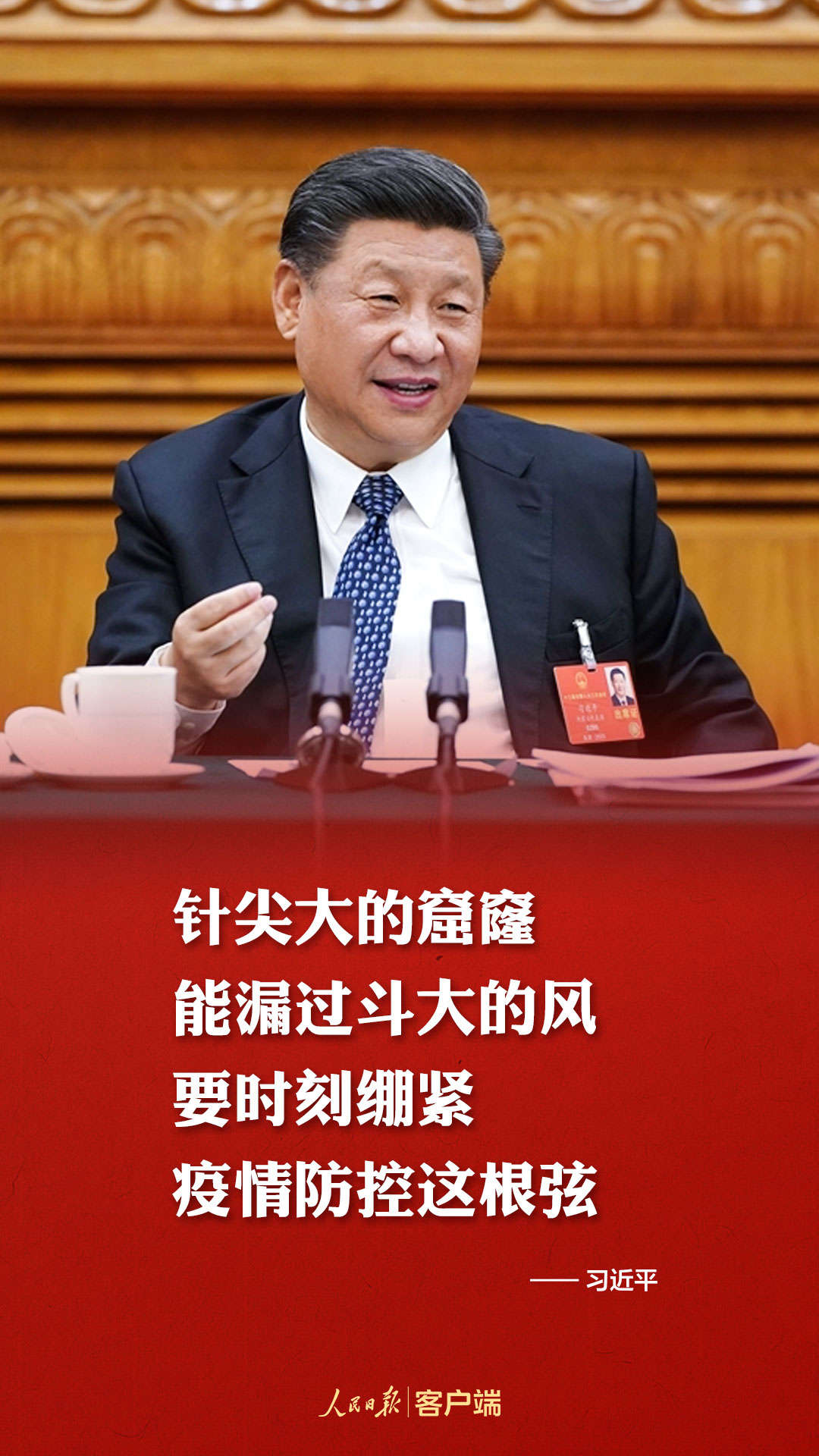24日下午,习近平总书记参加十三届全国人大三次会议湖北代表团审议。习近平指出,“针尖大的窟窿能漏过斗大的风”“要时刻绷紧疫情防控这根弦”“决不能让来之不易的疫情防控成果前功尽弃”。常态化疫情防控,织牢织密公共卫生防护网,习近平作出最新部署。