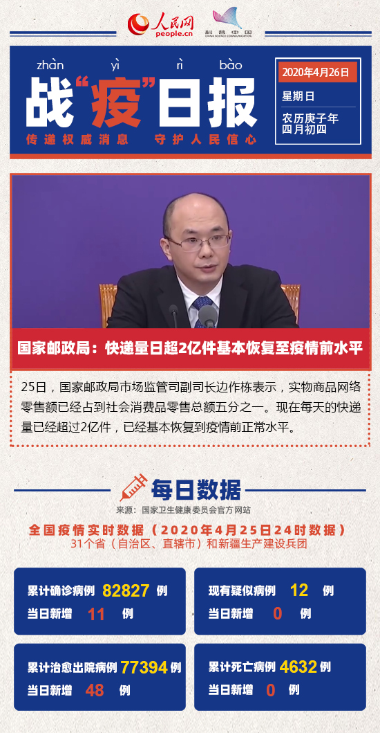 4月26日战“疫”日报:日超2亿件!我国快递量基本恢复至疫情前水平
