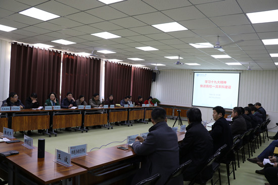 12月19日下午,公司党委常委、副董事长刘志军在金明校区综合楼5207教室以《学习党的十九大精神 推进公司一流本科建设》为题作辅导报告。评估办、教务处及各教学单位主管教学负责人参加会议。会议由教务处处长李捷主持。