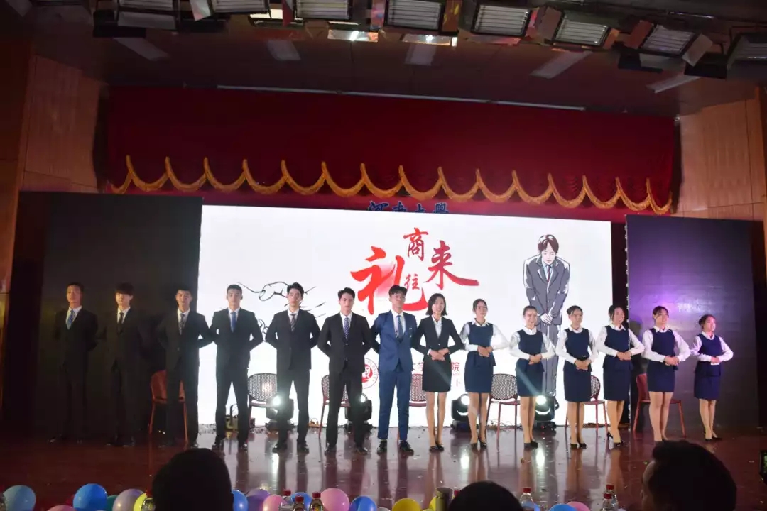 As a member of the business school,the importance of business etiquette is needless to say.In the evening ceremony display,"Courtesy and Business Exchange"showed the audience the generosity and decency of modern business talent,attracting the audience to cheer and exclaim greatly.The opusculum"Party A and Party B"was humorous and thought-provoking,which made everyone realize the profound meaning of the business school motto.