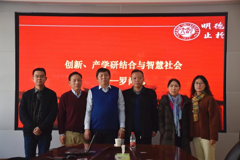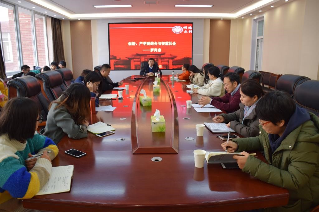 On the morning of December 13, Luo Shangzhong, assistant to the President of China Soft Science Research Association, President of China Media Society (Hong Kong), editorial director of China Soft Science Magazine and executive deputy editor, was invited to the conference room 201 of Business School to give a keynote report on "Innovation, Industry-Academia-Research and smart Society". Vice Dean Li Zhiqiang and some teachers and students of the business school attended the meeting. The meeting was chaired by Li Zhiqiang.