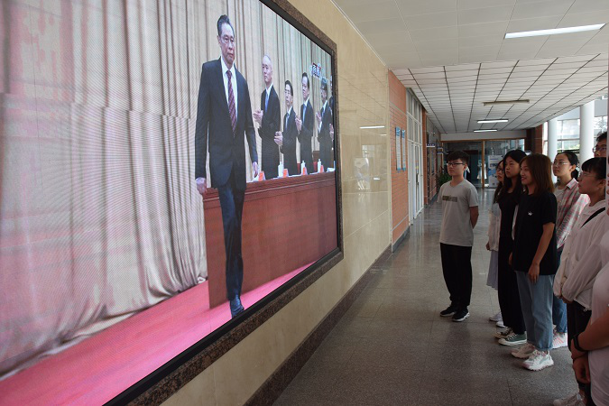 At the gate of the college, the big screen plays live broadcast in real time. Business school students stop to watch on the screen. At the same time, the college actively organizes students to watch it spontaneously in the dormitory. This live broadcast has aroused strong response among the students. Students have expressed that they will learn the loyal and selfless spirit of the anti-epidemic models in their future study and work, and inspire themselves with their heroic deeds, never forget their original intention, keep their mission in mind, strengthen their study and improve themselves constantly.