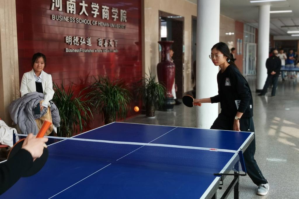 In order to stimulate the students' enthusiasm for sports, the welcome table tennis match was held in the lobby of the first floor of the Business School on the morning of October 31st, organized by the Culture and Sports Department of the Student Union of the Business School. 24 students from all majors of grade 2020 participated in the competition.