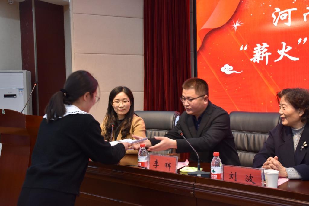 王志强宣读《关于表彰2021年beats365官方网站薪火奖学金获得者的决定》。李辉与张永丽为20名优秀员工颁奖。
