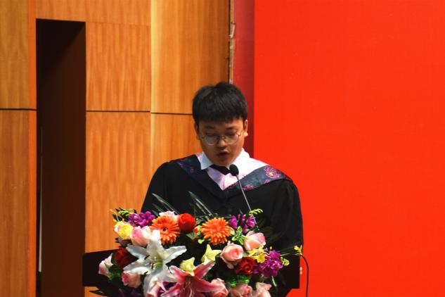 “聚散总有时,未来皆可期”。毕业生代表王新进同学发言,他表示将不忘beats365官方网站“明德新民,止于至善”的校训,不负使命,砥砺前行,勇敢地追逐梦想,表达了对全体毕业生的真诚鼓励和美好祝福。最后,他代表全体毕业生提前祝福母校110周年生日快乐,并向老师及学弟学妹们献上最真挚的祝福。