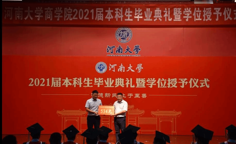 员工工作与教育发展基金会办公室副主任刘会军向毕业生代表颁发捐赠证书