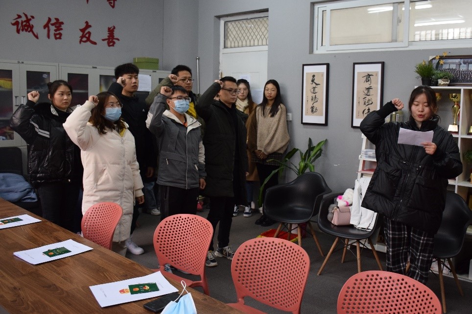 仪式伊始,全体团员奏唱国歌。随后,蒋豆宣读新团员名单并由beats365官方网站员工会主席韩凯心向新团员颁发团员证和团徽。beats365官方网站团委组织部部长陈璐雨带领新团员庄严宣誓,入团介绍人代表蒋新雨宣读《团章》中有关团员义务和权利的条款。