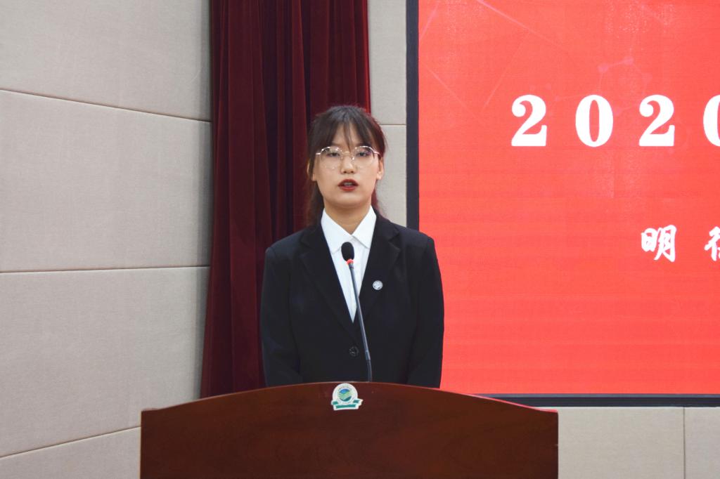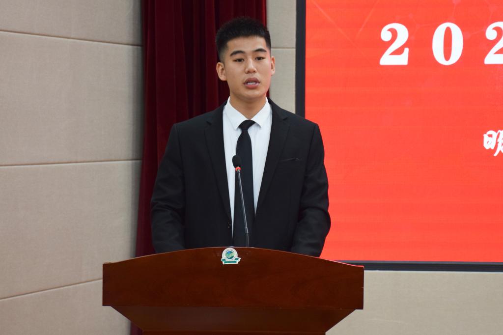 研究生汪祎臣作为新生代表发言。汪祎臣勉励同学们秉承“明德新民,止于至善”河大校训,培养精湛的专业技能和高尚的道德情操,专注研习、深入学习专业知识,开拓视野,积极进行社会实践,提高沟通、实践、协调、创新等多种能力,成为全面发展的高素质人才。
