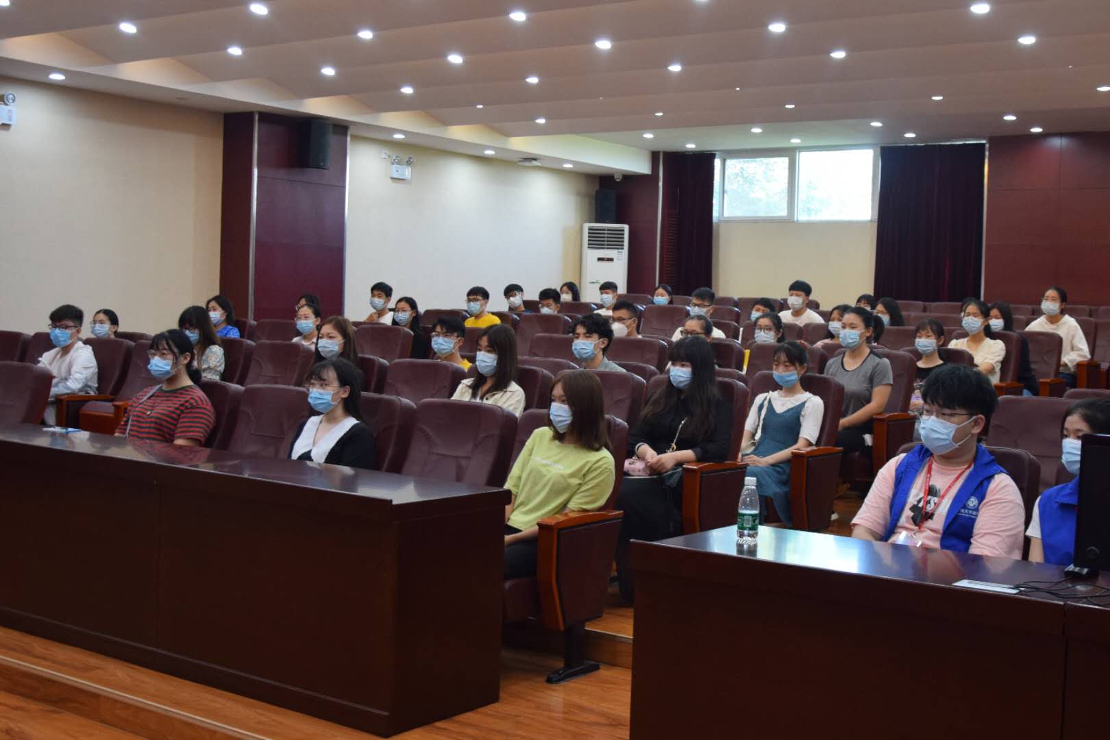随后,郑林浩对于疫情期间各员工干部的工作表示肯定,同时他也对新学期纪律、卫生等方面的工作提出新的要求,强调返校后需严格遵守公司规定。最后,武恒岳发言,他以学长的身份向同学们分享了许多学习和生活上的经验。至此,会议圆满结束,同学们安全有序地离开会场。