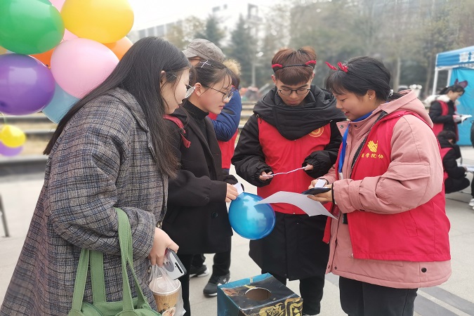 9点左右,活动正式开始。天气寒凉,但并没有阻挡志愿者与同学们的热情。随着参加人数的增加,文化节欢乐的气氛也逐渐攀升,志愿者们的才艺表演舞蹈更是将活动气氛推向了高潮。而公司青协以丰富多彩的活动形式吸引了诸多员工。“你好,小青”的扫描关注,让更多人关注了志愿行动;“众志成城”的团队合作,让更多人明白了团结的意义;“志愿知识让我猜”活动,一个个问题,一个个答案,增长了知识,丰富了头脑;“气球大作战”你争我抢,当仁不让;“你划我猜”的游戏,同学们之间表现出色,配合默契;“文物拼拼拼”那一块块拼图的整合是同学们智慧与耐心的最好明证。通过一个个小游戏,同学们在获得快乐的同时也进一步了解了志愿者文化精神。