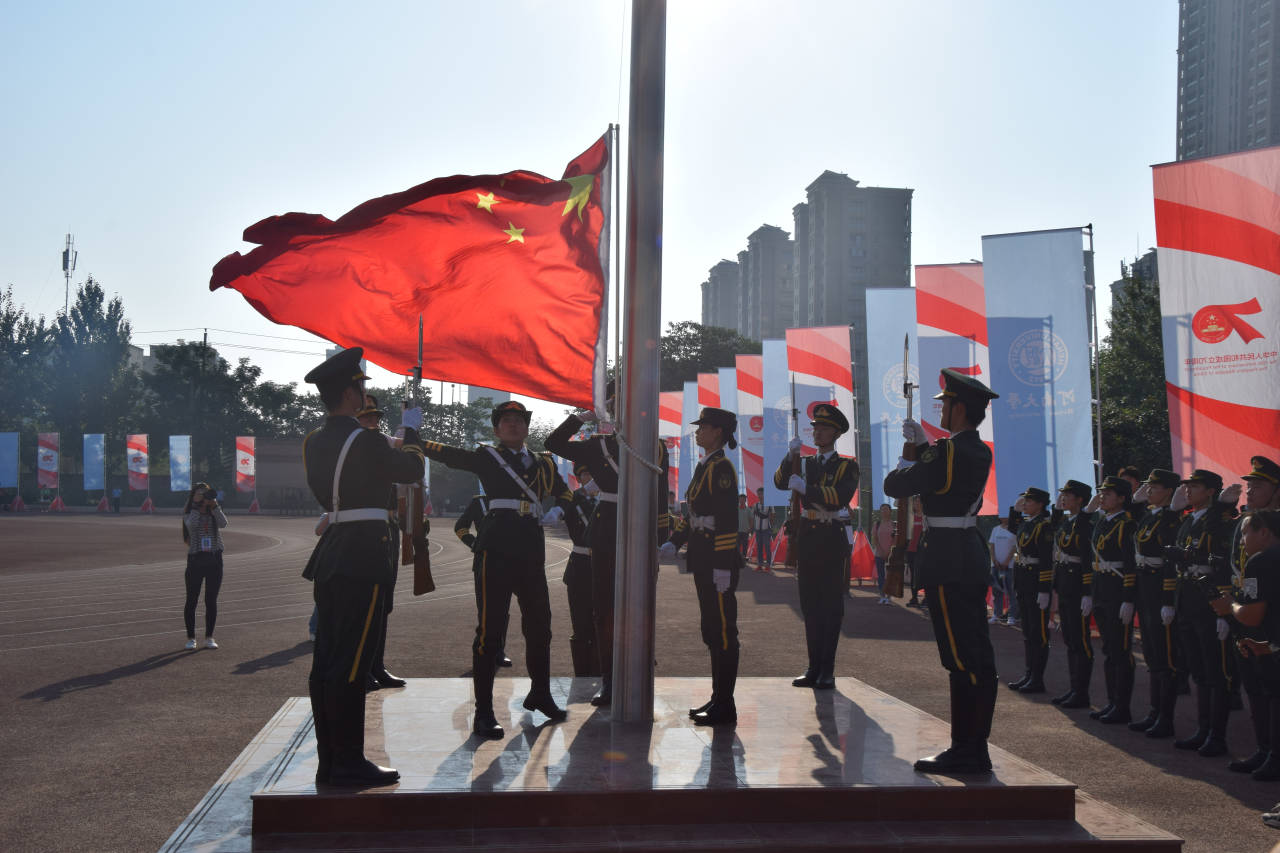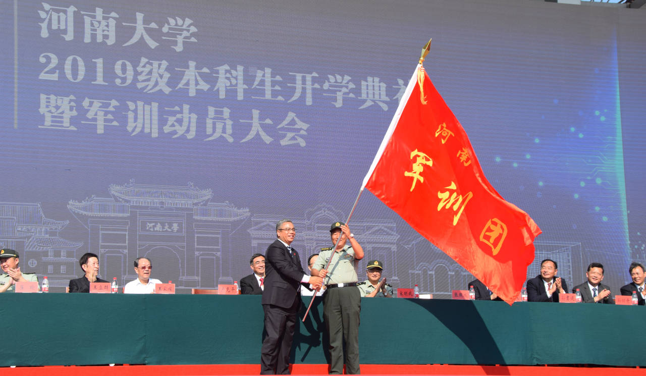 在轻快的乐曲中,公司党委书记卢克平向2019级军训团团长授旗,这标志着公司2019级新生军训正式拉开了帷幕。