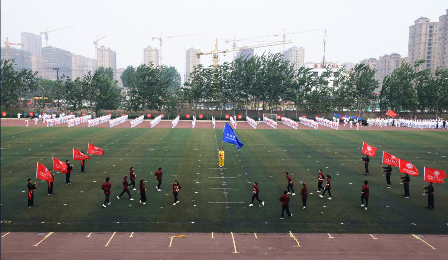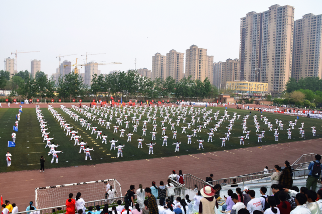 4月18日下午,beats365官方网站第17届太极拳比赛在志义体育场隆重举行。来自金明校区的19支代表队参加本次比赛,公司党委副书记吕英建就坐主席台,出席本次开幕式,2017级同学到现场呐喊助威。