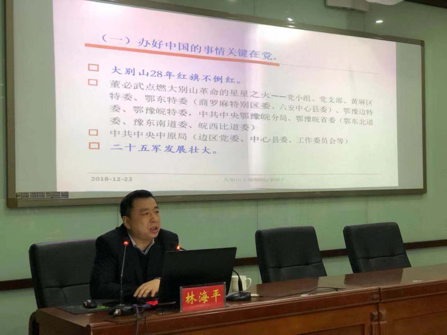 为深入学习贯彻习近平新时代中国特色社会主义思想和党的十九大精神,进一步推进“两学一做”学习教育常态化制度化,教育党员干部继承革命传统,加强党性修养,提升能力素质,学院于2018年12月21日-23日在大别山干部公司举办了以“党的建设高质量推动公司发展高质量”为主题的党员干部学习培训班。公司党委书记冯海清,副书记吕英建,系支部书记、系主任参加了本次培训。