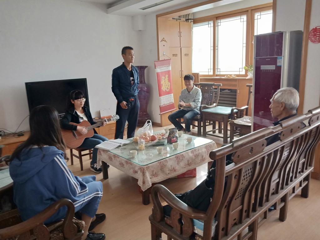 志愿者来到退休老师家中,受到了老师们的热情欢迎。张明正老师提到,青年员工要有所追求,不断进步,不断超越,积极向上,开阔眼界。沙献玉老师询问了志愿者们的专业,并提出了建议。老师还分享了自己考上北大的经历与之后的就业生涯,鼓励同学们努力学习,走向更远。刘建中老师说到无论做人做事都要踏踏实实,努力奋进,老员工更要珍惜青春时光,培养创新精神,奉献社会。随后志愿者为老师们带来艺术表演,受到老师们的好评。