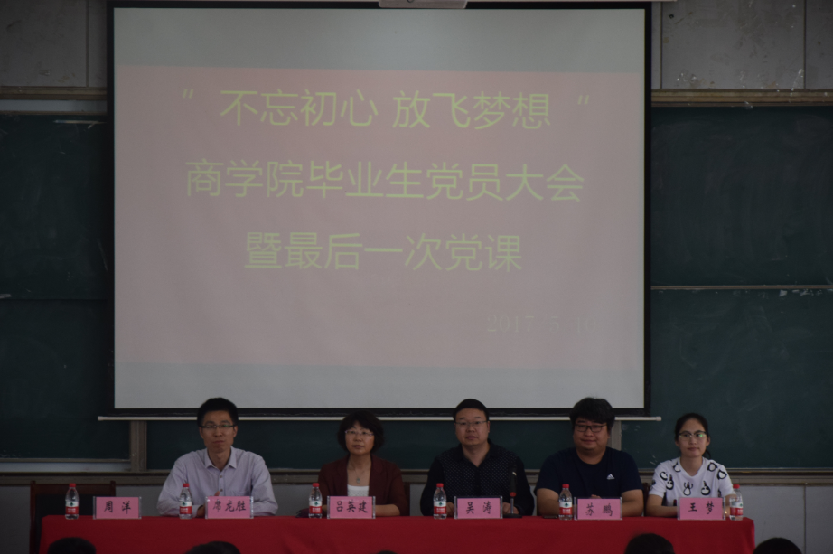 为增强毕业生党员党性意识,做好毕业生党员离校相关工作,5月10日下午,公司党委在7号楼7305教室为毕业生党员上了以“不忘初心,放飞梦想”为主题的最后一次党课。公司党委副书记吕英建、研科办主任席龙胜、团委副书记苏鹏、14级辅导员王梦以及全体毕业生党员参加了会议。会议由公司党委办公室主任吴涛主持。