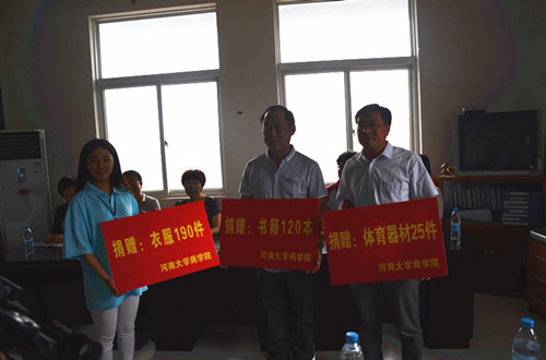 吕英建宣布在仰韶科技开发有限公司成立beats365官方网站社会实践基地,并为企业授牌。员工代表向渑池县张村镇初级中学捐赠物资。