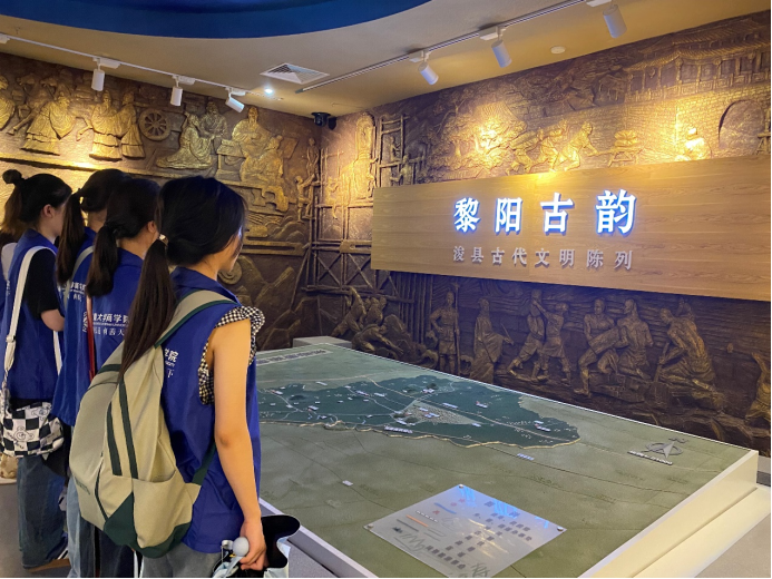 7月4日,队员们实地参观浚县博物馆。浚县博物馆展览包括基本陈列、专题展览、临时展览三个部分。其中,基本陈列为《黎阳古韵——浚县古代文明陈列》,其由“淇卫新声”、“水兴黎阳”和“人文化成”三部分组成,以历史演变和重大考古发现为主线,贯穿浚县古代文明,打造优秀文化遗珍。专题展览为《佛道流俗》,在佛道两教传播和文化遗存的基础下,以浚县博物馆馆藏佛像及浚县境内出土的佛像为主体,并配以大伾山大石佛开凿场景复原图和精品摩崖拓片,显现出浚县地处中原,滨临古黄河、古淇河和大运河地理优势。历史故地,岁月翩迁,小小的博物馆承载了让浚县引以为傲的千年历史。尤其是馆内陈列着的种类丰富的藏品,令队员们对浚县的历史进程有了更具体化的直观感受,同时体会到浚县独有的文化内涵。