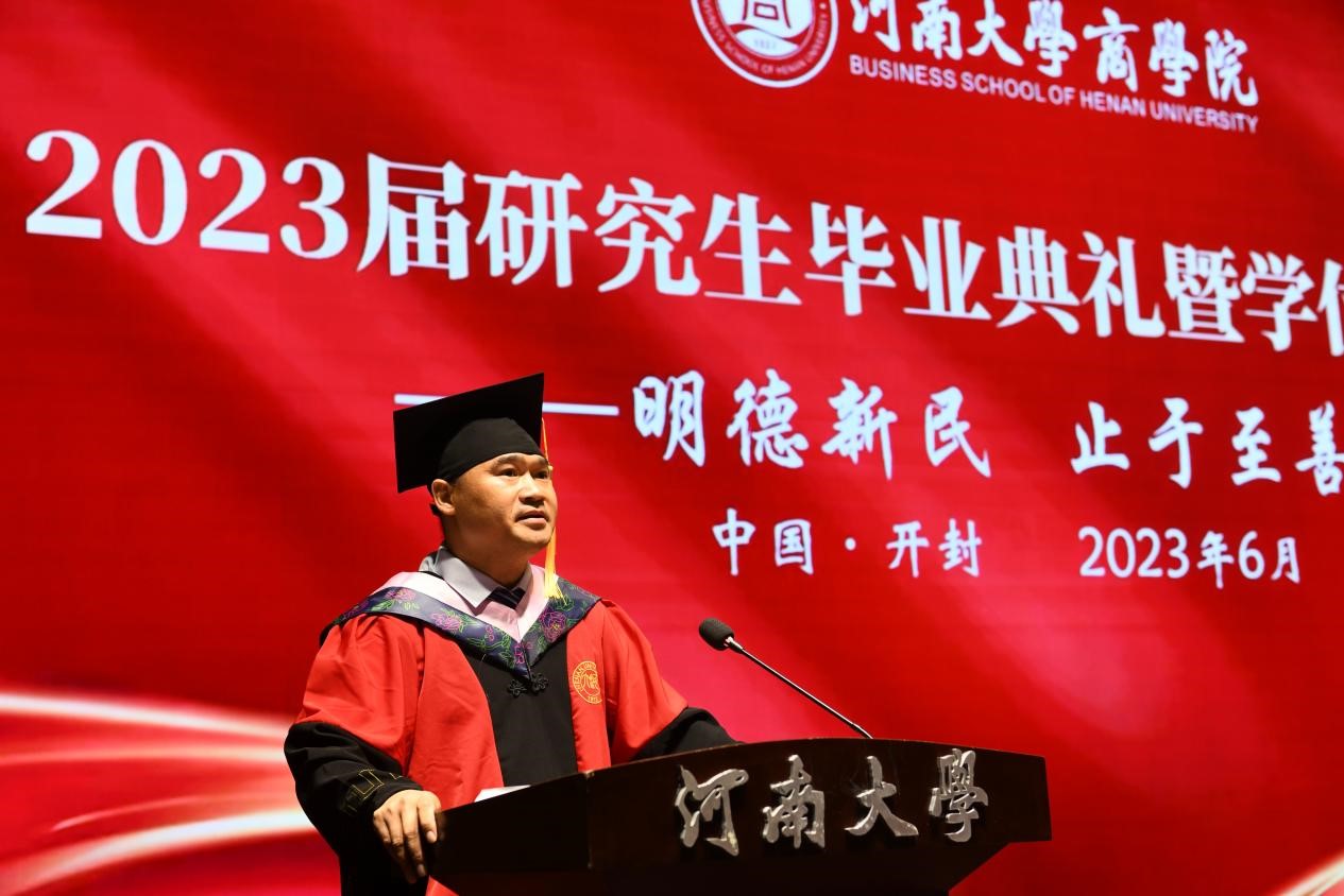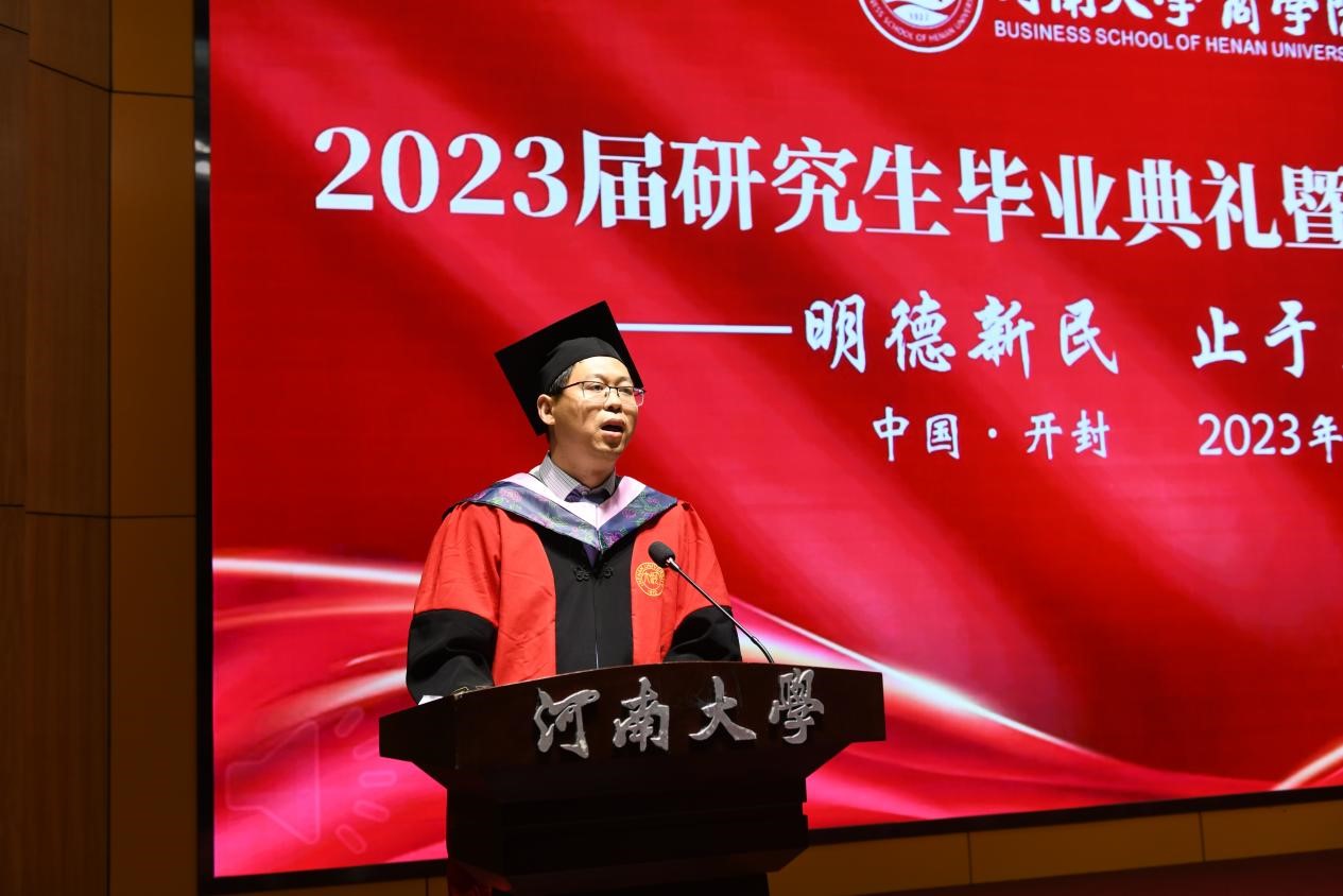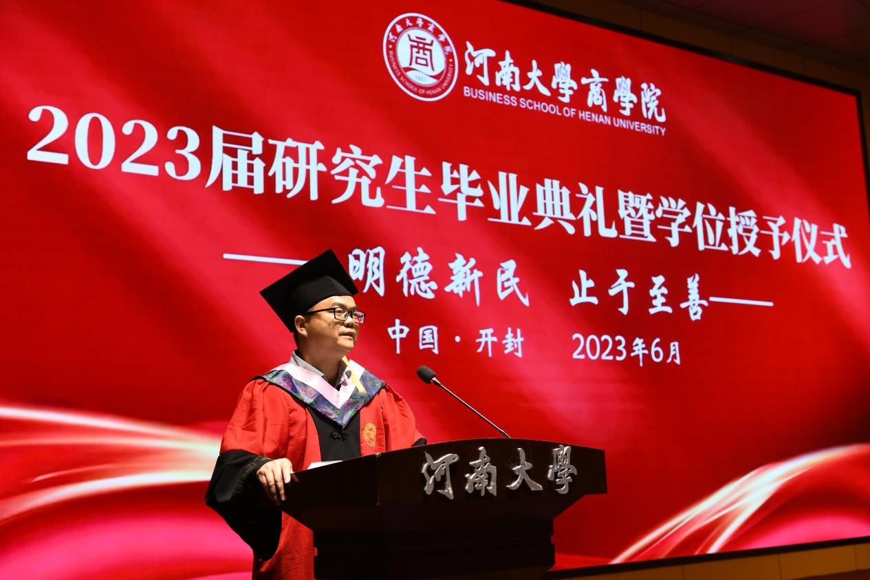 李俊涛老师作为职业导师代表发言。他首先表达了对母校对恩师的感激之情,寄语毕业生们要继续秉持明德新民,止于至善的校训,敢于担当担责,敢为天下先,做三有青年,有志向,有学识,有恒心,并鞭策同学们奔跑向前,闯出一片属于自己的美好未来。