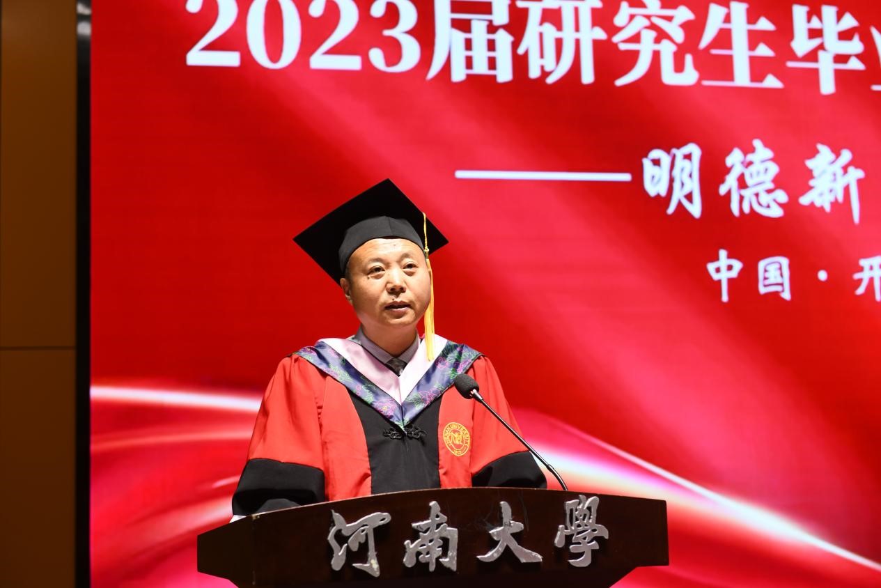 张永军老师作为博士生导师、教师代表发言。他指出研究生毕业是人生的新起点,他强调责任二字的重要性。寄语毕业生们爱岗敬业,恪尽职守,精益求精,踔厉奋发,砥砺前行,做新时代的奋斗者,搏击者,奉献者。