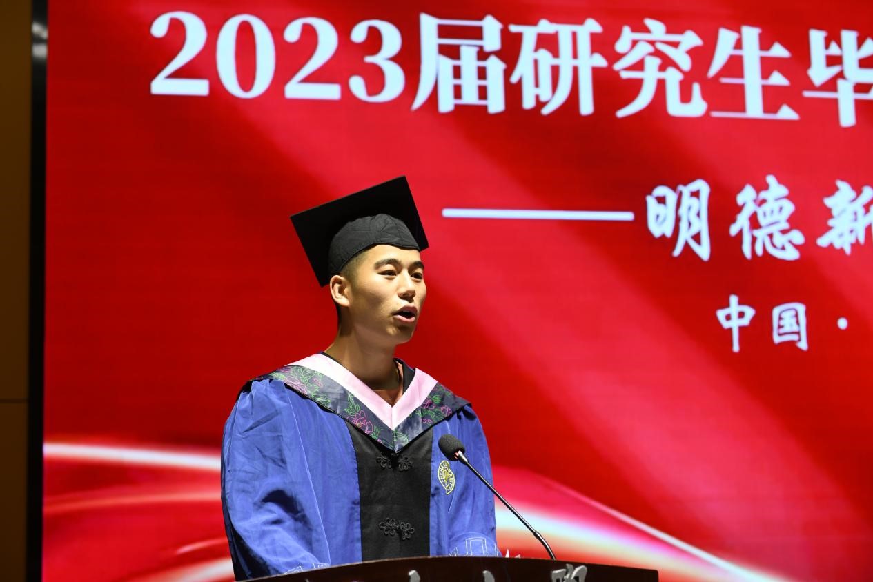 2020级汪祎臣作为毕业生代表发言。他代表全体毕业生感谢公司及老师三年来的栽培和教育,深切表达了对母校的眷恋不舍。他呼吁毕业生们以“明德弘道,商善天下”的院训作为动力,用最豪迈最稳健的步伐迎接美好的明天。