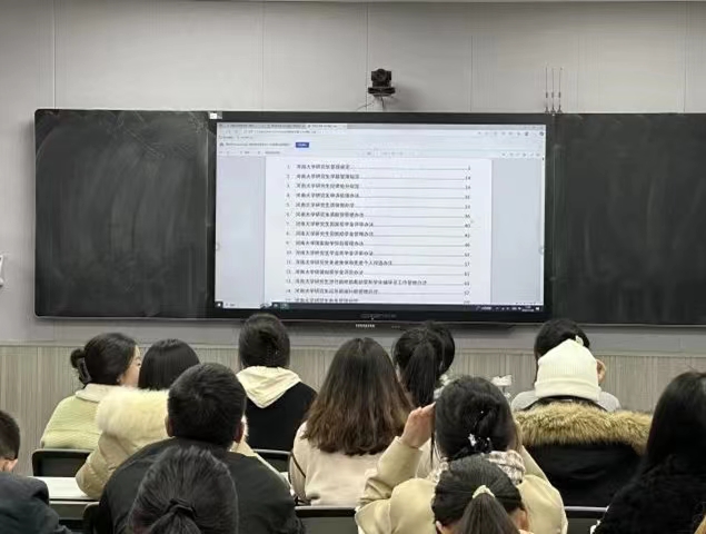 2023级学硕班班长马瑶瑶同学详细介绍了手册里的各项内容,让同学们深入了解公司的各种规章制度、奖惩政策、学位条例等注意事项。同学们也认真翻看阅读手册,充分了解了自己作为研究生的基本权益、要遵守的校规校纪等内容,知晓了边界底线,同时也树立了自己的个人原则,坚决不做违反校规校纪、学术造假的人。
