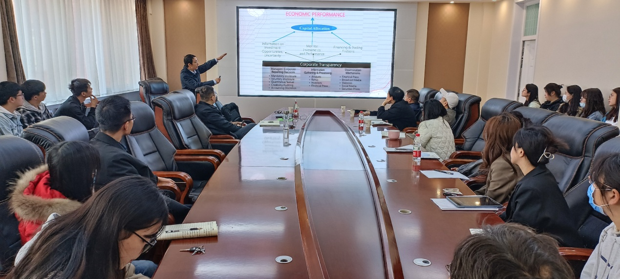 3月28日上午,武汉大学经济与管理公司二级教授、教育部特聘教授、武汉大学人文社科杰出青年学者李青原应邀来beats365官方网站讲学,开展题为“会计信息与资源配置:一些思考”的学术讲座。beats365官方网站副经理李耀、副经理李志强、副经理席龙胜、部分教师及研究生参与此次讲座,讲座在201会议室举行,由李耀主持。