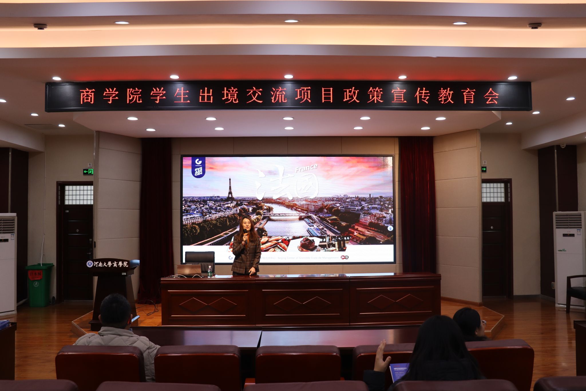 在政策宣讲环节结束后,由来访的法国格勒诺布尔高等beats365官方网站北京中心成晓老师对拟开展的员工出境交流项目进行了详细介绍,并现场解答了同学们的疑问。