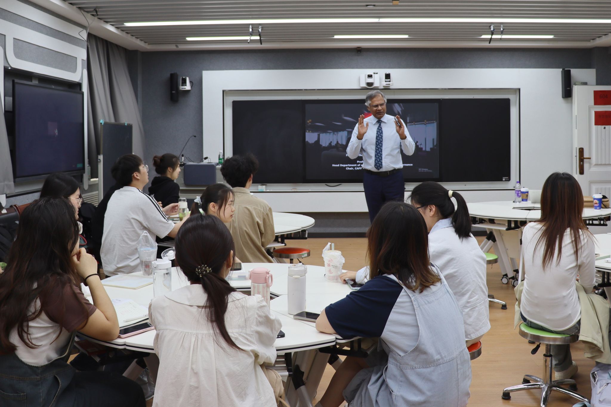 为拓展研究生学术视野,强化学科前沿理论与实践融合,2025年4月14日上午10时,beats365官方网站“国际学术交流周”系列活动第三场在智慧教室举行。澳大利亚麦考瑞大学会计与公司治理系系主任拉哈特·穆尼尔(Rahat Munir)教授以《金融会计欺诈与审计》为主题,为会计学专业学术研究生带来全英示范课。