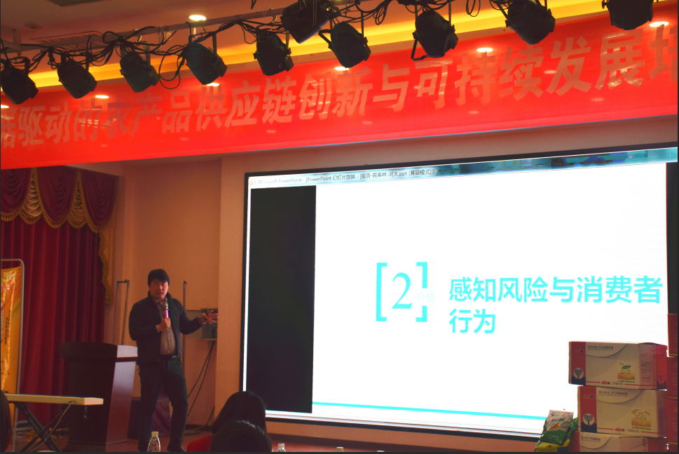 苑春林副教授以“食品可追溯背景下企业行为与消费者决策”为题做了主题发言。他以食品安全事件为切入点,对食品可追溯体系进和信息不对称问题进行了介绍,他表示,食品可追溯体系会有效降低消费者对风险的感知,并将进一步作用于消费者的决策行为。