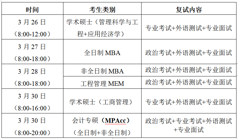 3、复试具体时间安排