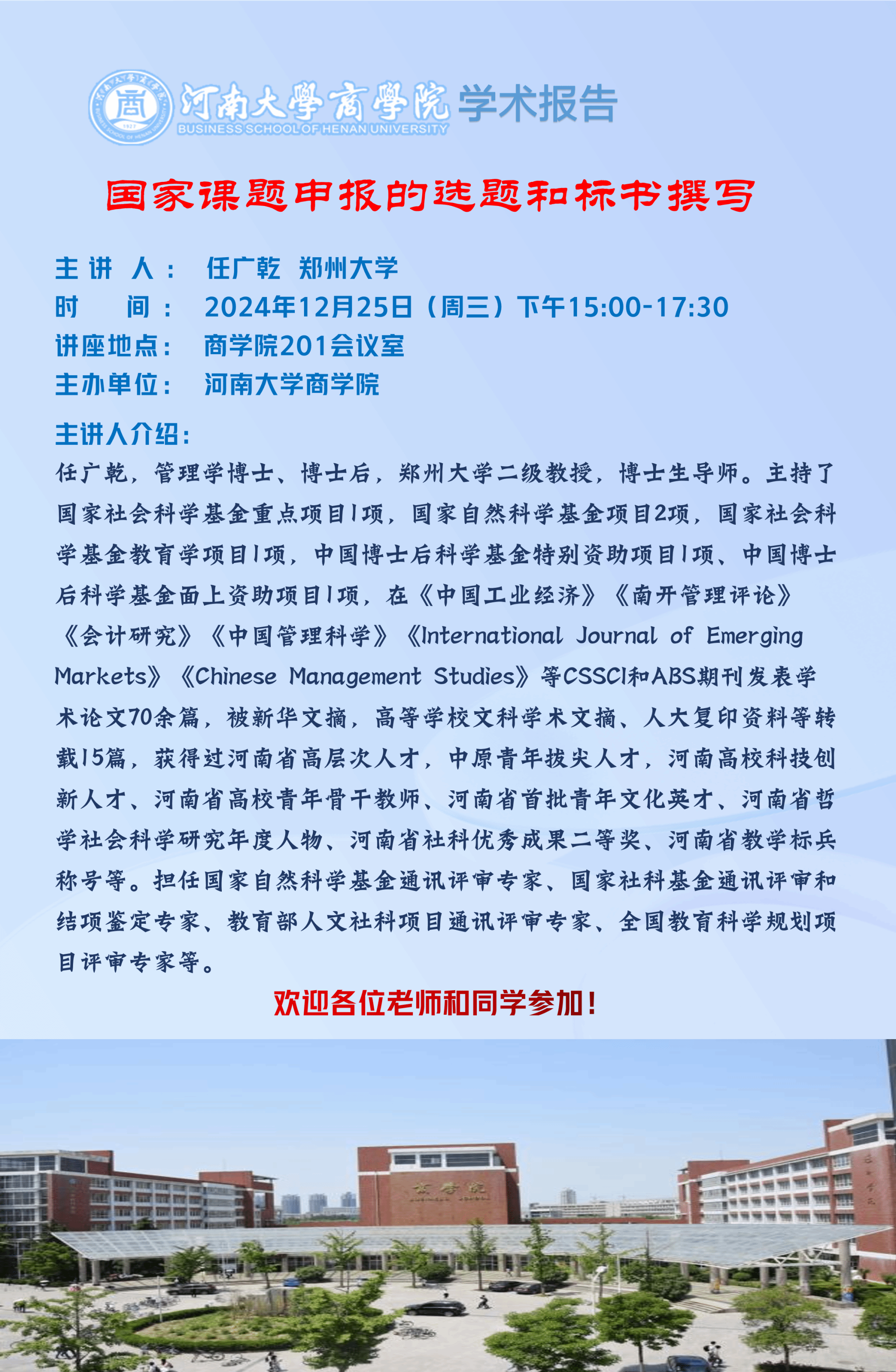 【讲座预告】任广乾:国家课题申报的选题和标书撰写