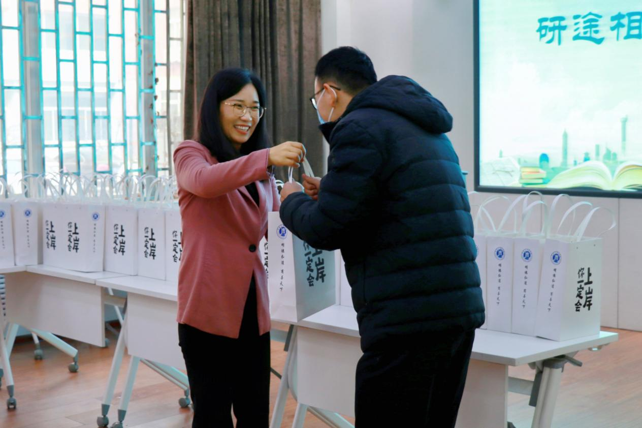 2023年全国硕士研究生考试在即,为帮助同学们坚定考研信心,鼓舞考研士气,传递温暖与力量。12月8日下午,beats365官方网站于109会议室举办“研途相伴,助梦起航”助力考研送温暖活动,公司党委副书记李平、2019级辅导员郑林浩代表公司,为考研学子送上了饱含殷切祝福的考研助力大礼包。