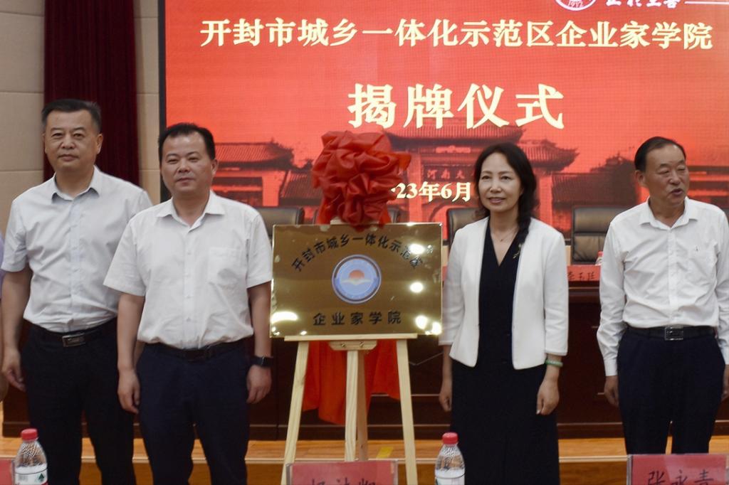 最后,王彦涛与谭贞共同完成“开封市城乡一体化示范区企业家公司”揭牌仪式,出席嘉宾上前合影留念,标志着开封市示范区企业家公司正式成立。