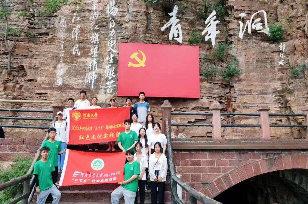 经过四小时的跋涉后,团队最终抵达青年洞。作为红旗渠总干渠的咽喉工程之一的青年洞,是300名青年在最困难的时期修成的最艰巨的工程。团队在青年洞前集体合影留念。值得一提的是,团队在这里遇到了同样前来学习“红旗渠精神”的河南农业大学的三下乡员工团队。作为时代的新青年,我们将传承发扬那不畏艰险、艰苦创业的精神。