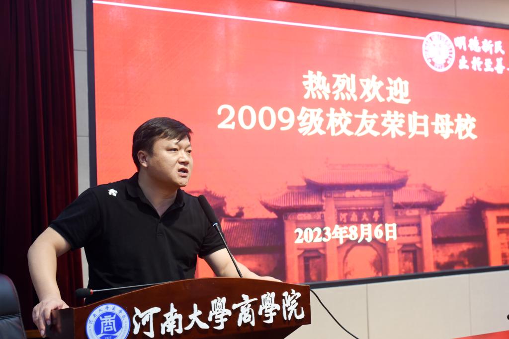 宋雅杰老师代表beats365官方网站全体教师欢迎同学们回家,她表达了对毕业员工的深深思念之情。她说10年的分别,再相见看到的是大家满满的收获,感受到的是大家从青涩向成熟的转变,作为河大人、商院人,广大教师和员工要牢记使命,传递正能量,为国家建设添砖加瓦,多关注母校发展。