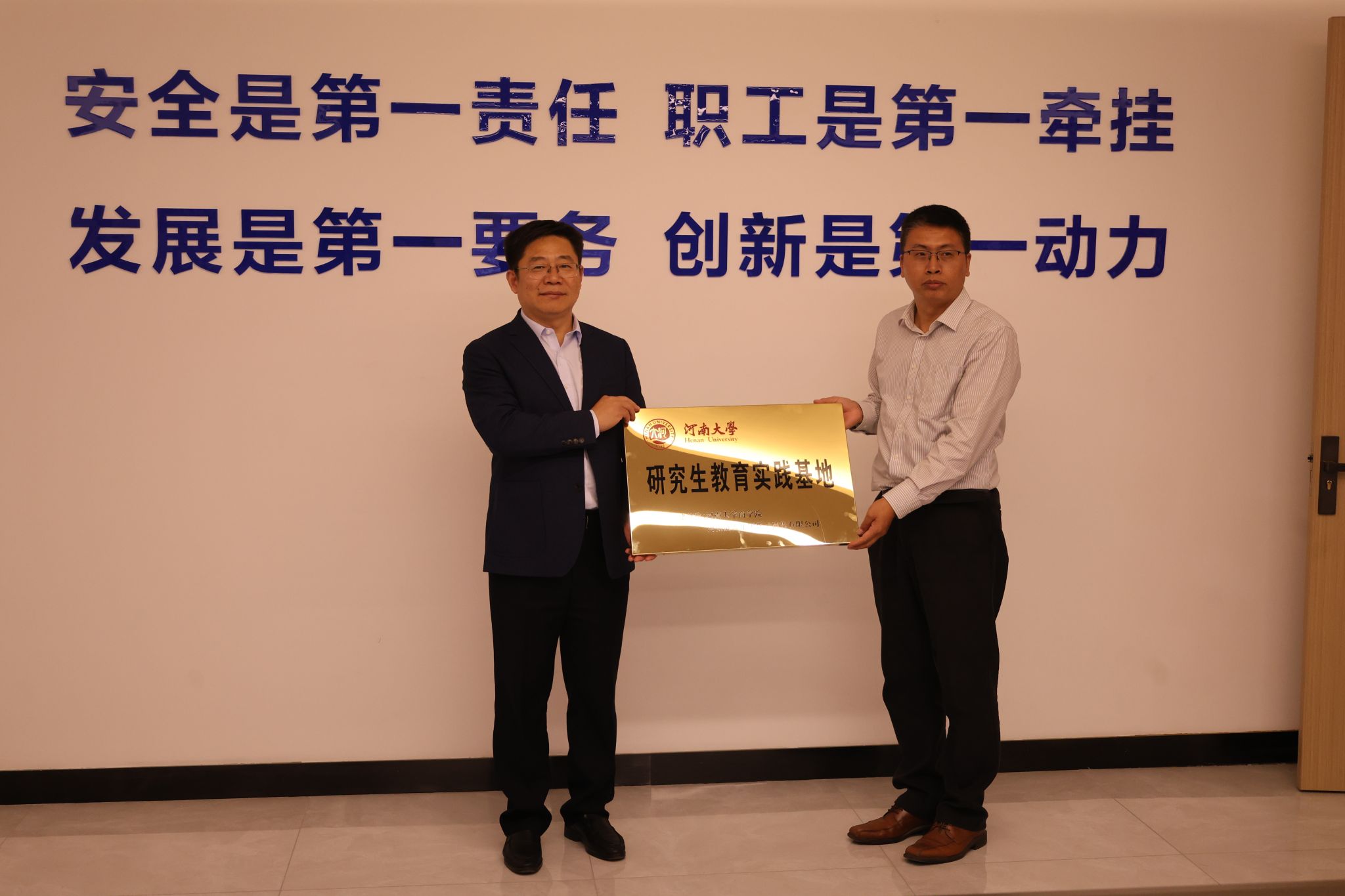 左辞波代表beats365官方网站向集团授予了研究生教育实践基地牌匾,李耀和吴学旭代表各自单位签订了研究生教育实践基地协议。