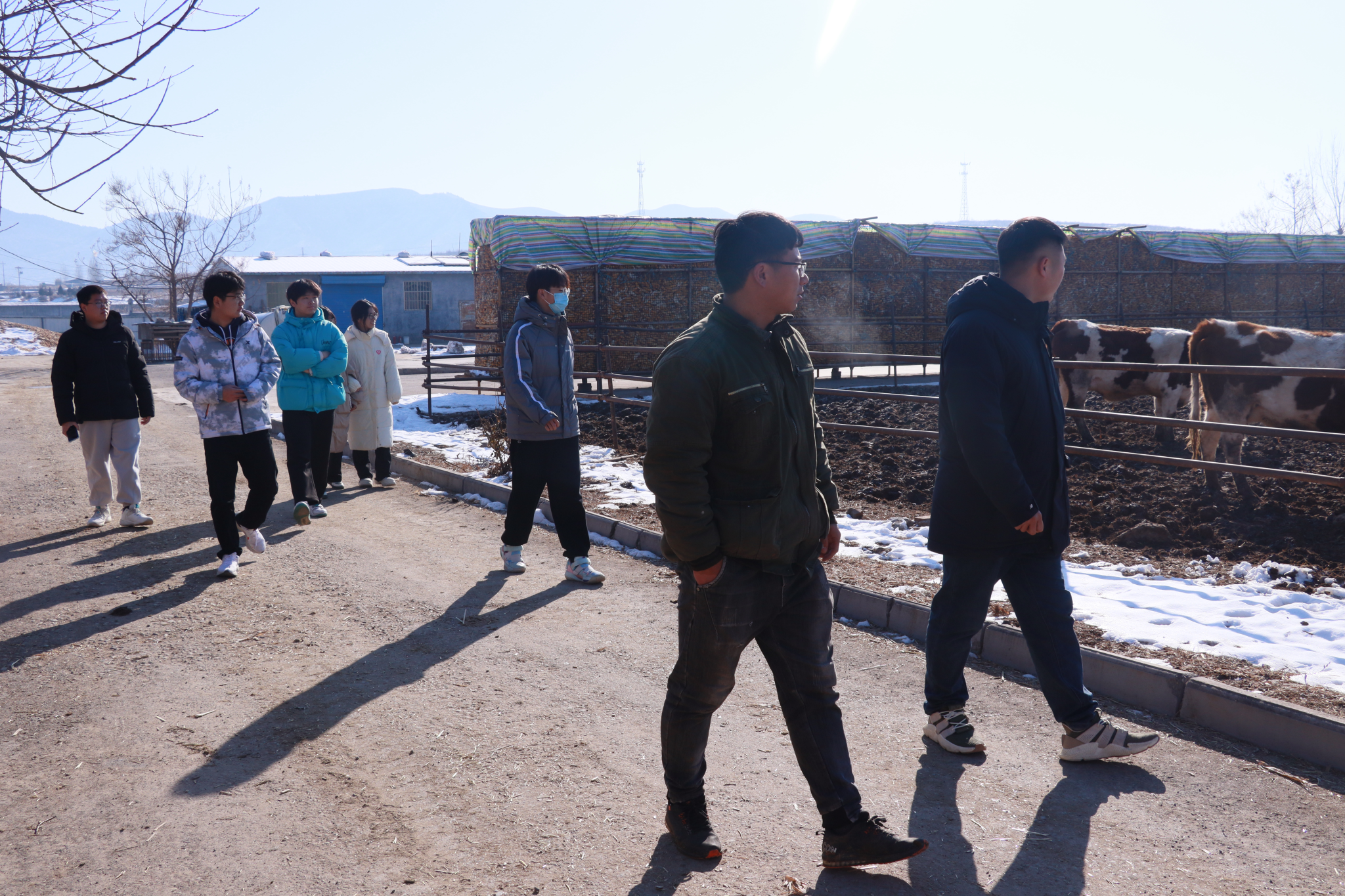 林州市合涧镇木纂村立足本村特色,盘活现有资源,增加集体收入。1月24日,实践调研团队深入木纂村,进行实地调研。在负责人的带领下,团队成员参观了养牛棚、干料场,参观过程中,团队成员就该养牛场规模以及牛场进村后对村镇经济发展带来的切实收益等相关问题与负责人做出了交流,从多角度切实感受到“田种玉米、秸秆回收、农户增收”的循环农业发展格局以及村内特色产业对乡村振兴的促进作用。