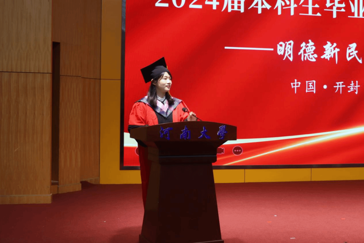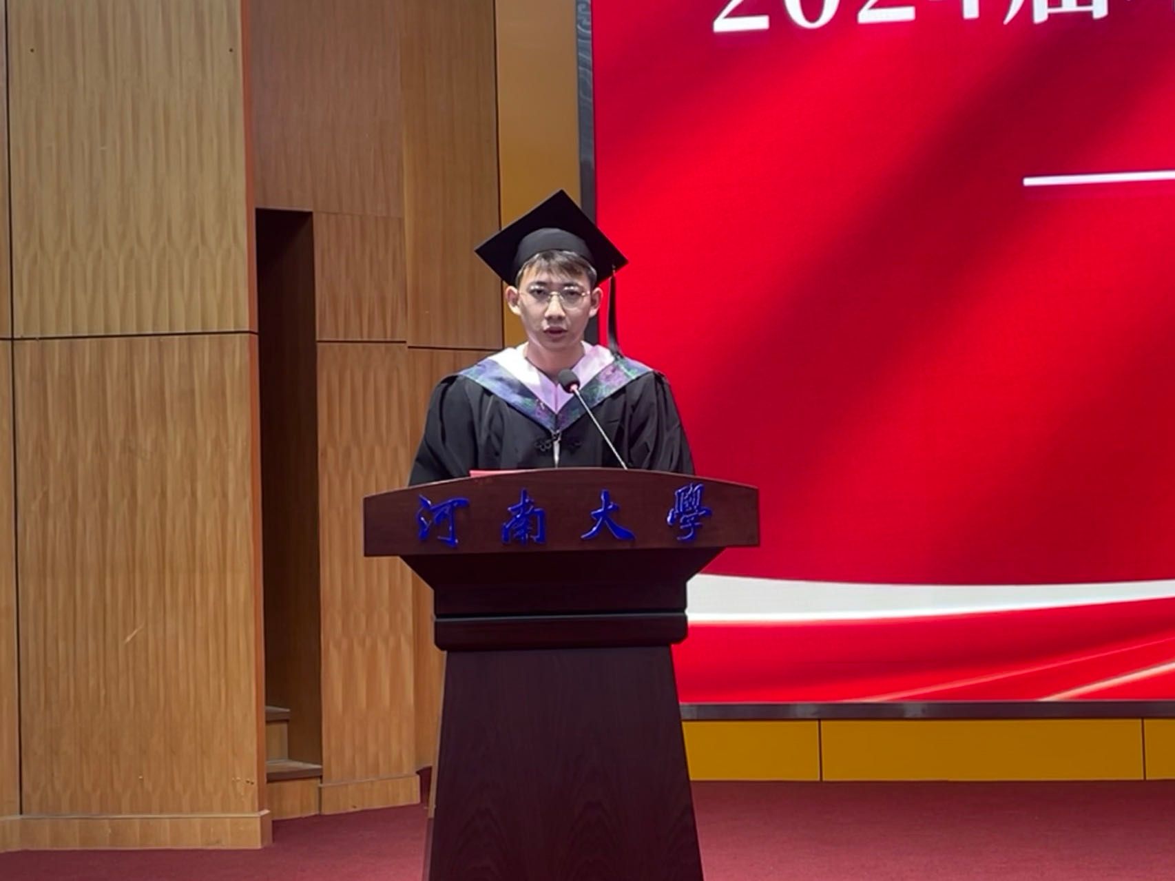“聚是一团火,散作满天星”。毕业生代表邵申发言,他表示在公司领导的殷殷期盼和老师们的深情嘱托下,2024届全体毕业生,将牢记“明德新民,止于至善”的校训,不忘“明德弘道,商善天下”的院训,做拥有智慧、富有激情,胸怀大智、脚踏实地,肩负责任、勇挑重担的人,不畏艰险、追求卓越。