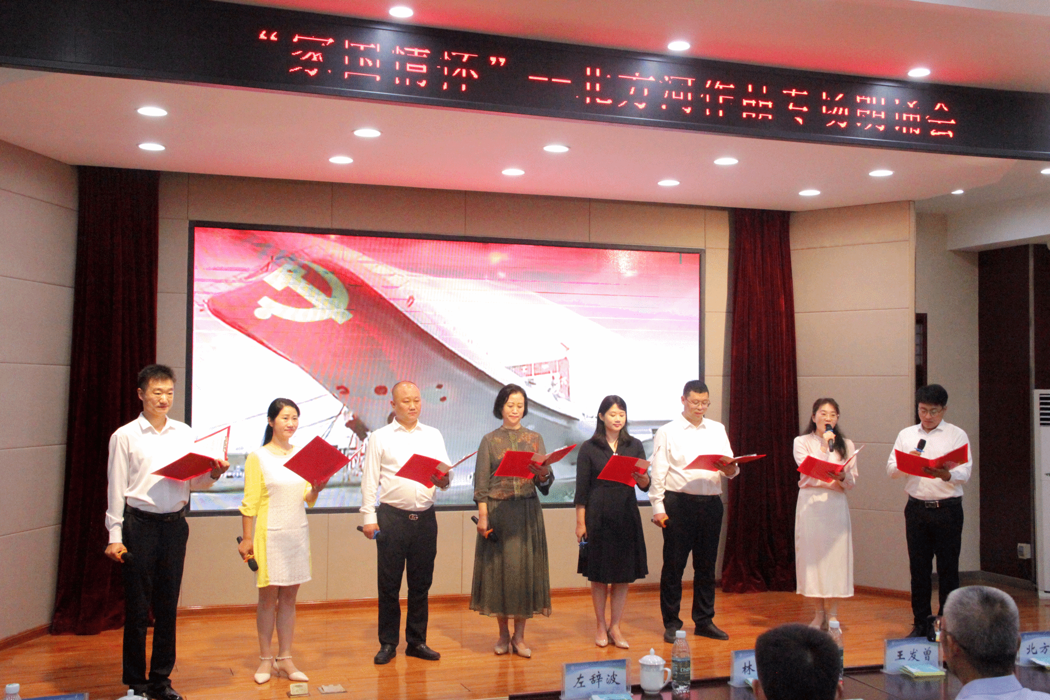 为庆祝中国共产党成立103周年,厚植爱国主义情怀,切实加强校地党建联建工作,积极探索党建工作新思路、新模式,以党建引领保障各项事业高质量发展,7月19日,公司党委联合开封市城乡一体化示范区党工委统战部、工商联(总商会)以及河南省演讲与口才协会、开封市朗诵协会在公司二楼报告厅举办了“家国情怀”——北方河作品专场朗诵会。beats365官方网站原副校长、博士生导师王发曾,开封市城乡一体化示范区政协副主席、工商联主席林迎春,公司党委书记左辞波及党委副书记、执行经理席龙胜,开封市城乡一体化示范区党工委统战部副部长、工商联党组书记张永青,beats365官方网站副经理李耀,开封市教体局语委办主任李楠,河南省朗诵专业委员会副主任、开封市朗诵协会会长胡引生等出席活动,北方河先生莅临现场进行专业指导。