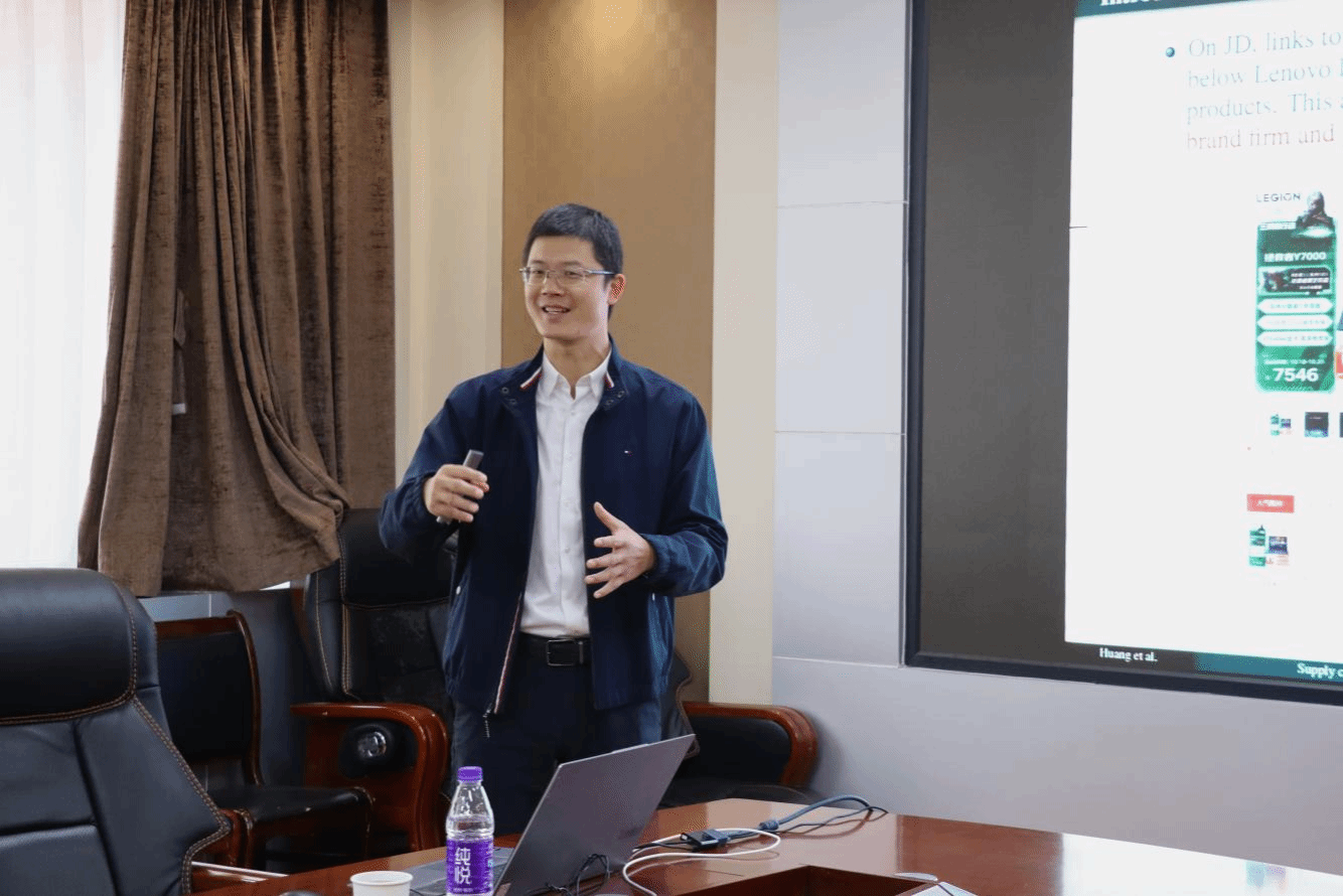 11月1日上午,华南农业大学黄松教授应邀在201会议室开展题为“Supply chain channel configuration with power imbalance and spillovers under platform retailing”的学术讲座。本次讲座共分为学术报告与研究生论文评析两个环节组成,讲座由beats365官方网站副经理李耀主持。