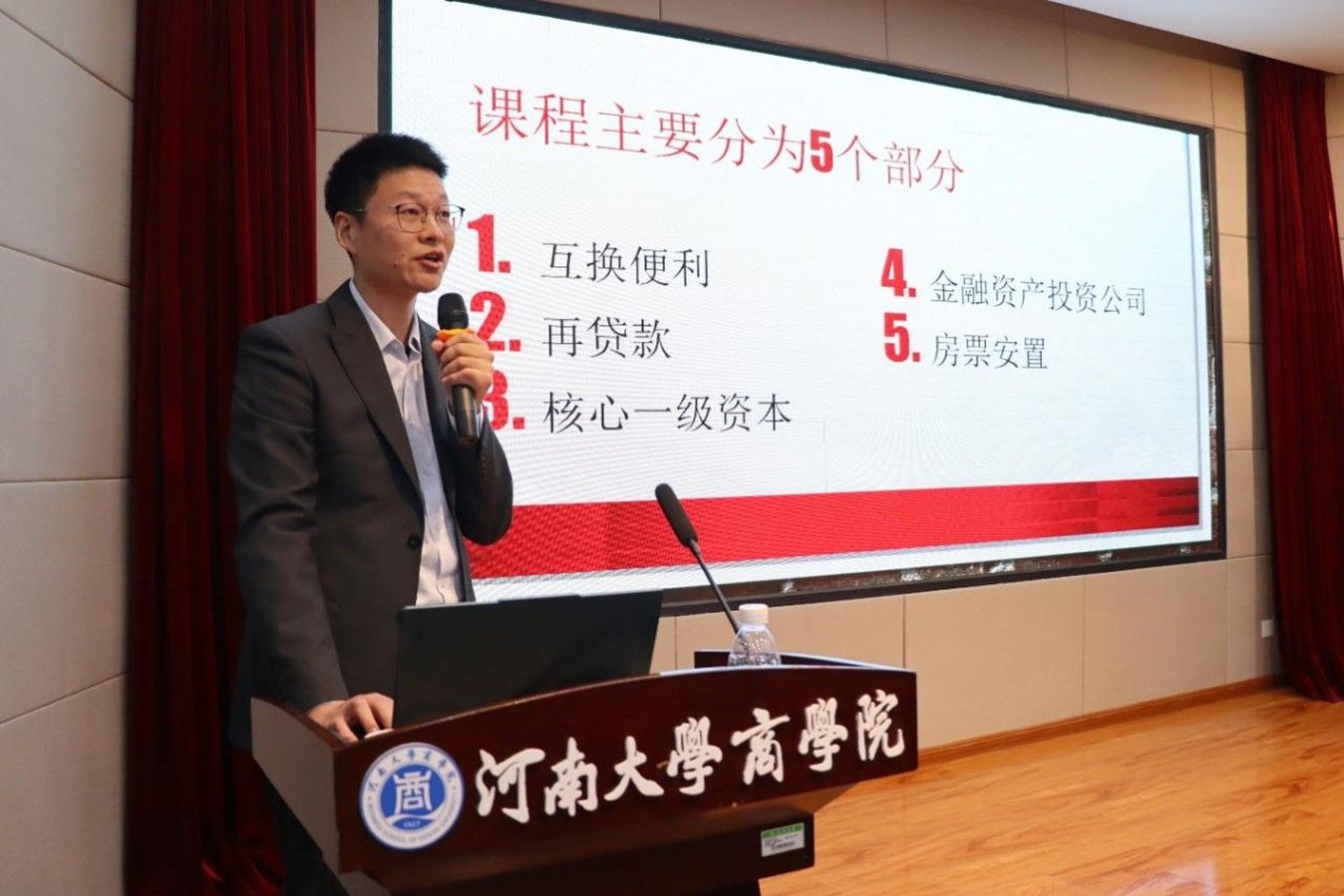王彪以“一揽子增量政策”为课程题目,介绍了一揽子增量政策的提出背景,从五个针对和五个方面进行讲述。他围绕互换便利,再贷款,核心一级资本,金融资产投资公司,房票安置五个部分,对近期财经政策和政策包含的一些名词的解释进行了讲解,展示了逆周期调节的政策内涵和金融工具,鼓励学员们把个人发展与国家发展及宏观环境联系到一起。