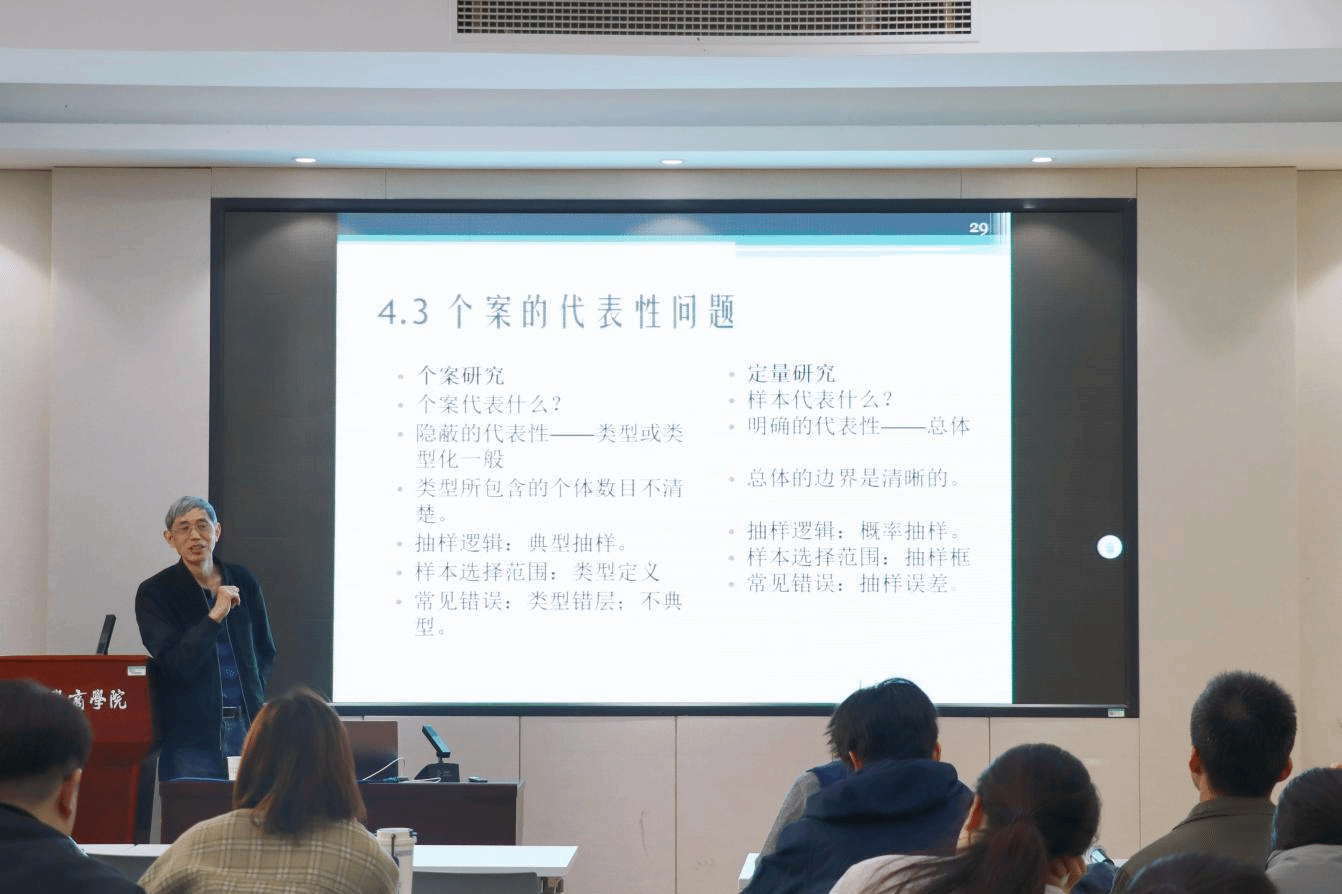 王宁教授以其深厚的学术背景和丰富的研究经验,深入探讨了个案研究在社会科学研究中的重要性及其面临的各种方法论问题。他围绕证据类型与信息成本、个别与一般的关系、代表性问题与抽样逻辑、外推的逻辑基础、因果关系的推断以及效度考量等六个核心方法论议题展开报告,着重探讨了个案研究方法中的六项常见批评。通过对比个案研究与问卷调查两种方法,王宁教授详尽阐述了证据类型的差异及个别与一般概念的内涵。他明确指出,个案研究的宗旨不仅限于经验描述性研究,还涵盖学理性研究,后者尤为强调概念性知识的创新与发展。在探讨个案的代表性问题时,王宁教授详细分析了个案的类型及其选择原则,并进一步论述了从个案研究中得出的结论如何合理地进行外推,以及如何准确判断其中的因果关系。此外,他还就资料收集过程中的观察、访谈环节,以及资料分析阶段提出了确保效度和信度的具体策略和方法,以确保研究的严谨性和可靠性。