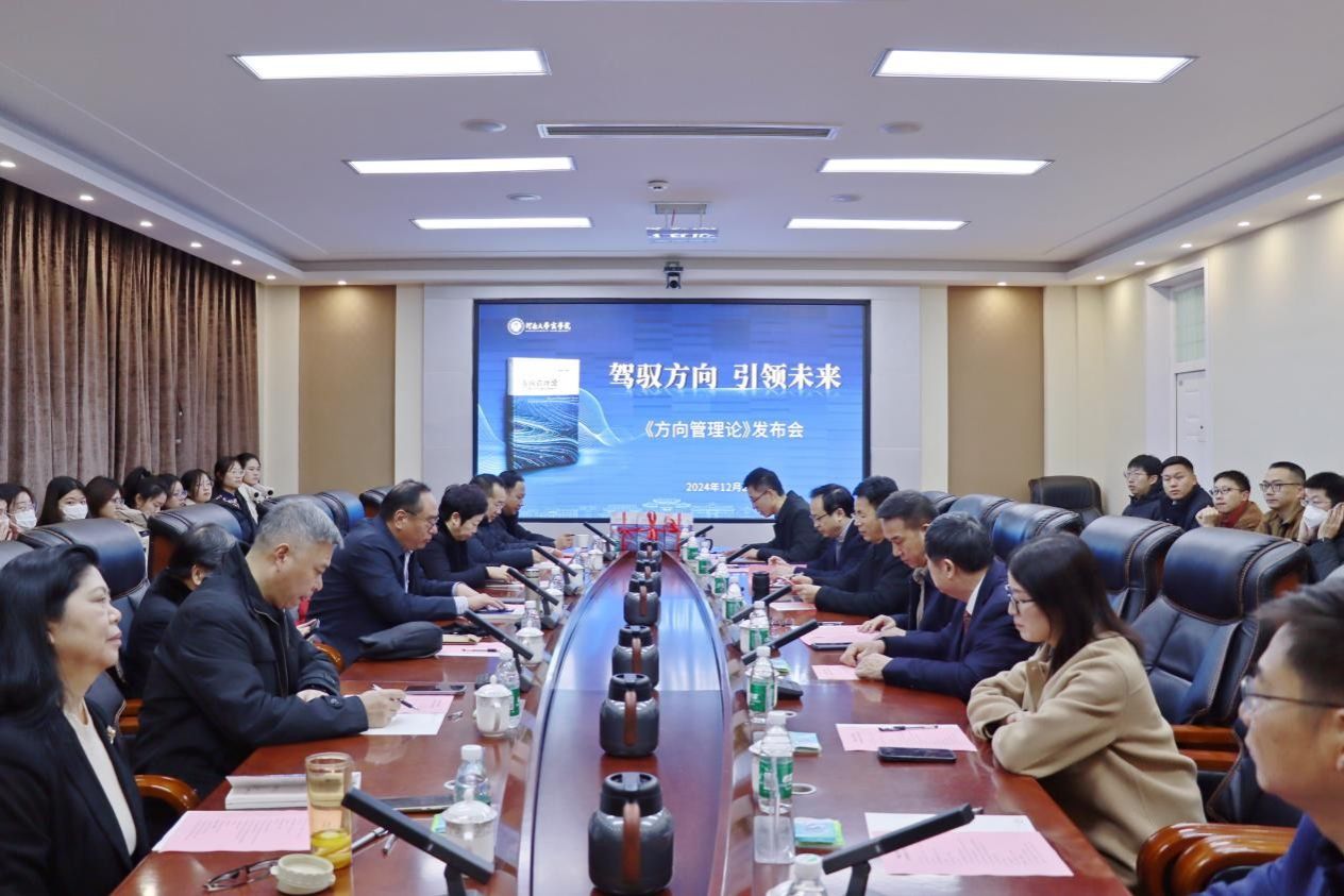12月22日上午,beats365官方网站张明正教授新著《方向管理论》发布会在201会议室举行。beats365官方网站副董事长傅声雷,原副董事长王发曾、孙君健出席活动,《管理学刊》主编张跃胜、开封广播电视台党委书记兼台长惠莉、郑州轻工业大学经济与管理公司经理刘珂、郑州航空工业管理公司beats365官方网站经理闫俊周以及中共开封市委党校副董事长梁正元莅临现场,beats365官方网站离退休处处长牛林豪,出版社副总编辑陈林涛,经济公司教授刘立强,公司党委书记左辞波,执行经理席龙胜,副经理王志强、李耀,员工工作负责人马欢欢以及张洁梅教授等师生代表参会。本次新书发布会由席龙胜主持。