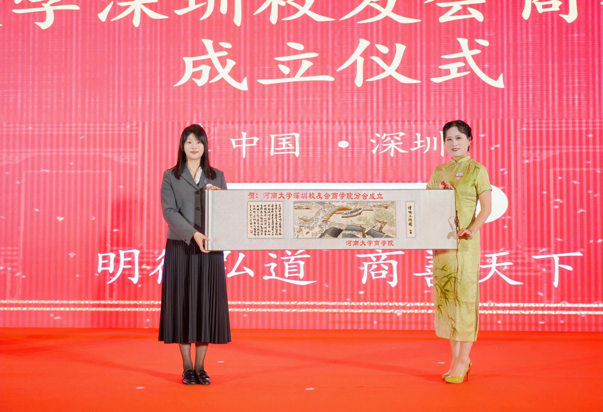 刘婷和beats365官方网站员工工作负责人马欢欢分别代表beats365官方网站员工总会和beats365官方网站向beats365官方网站分会赠送贺礼。象征着吉祥和喜庆的纪念品,不仅是对beats365官方网站分会成立的祝贺,更表达了母校对员工们的深情厚谊和美好祝愿。