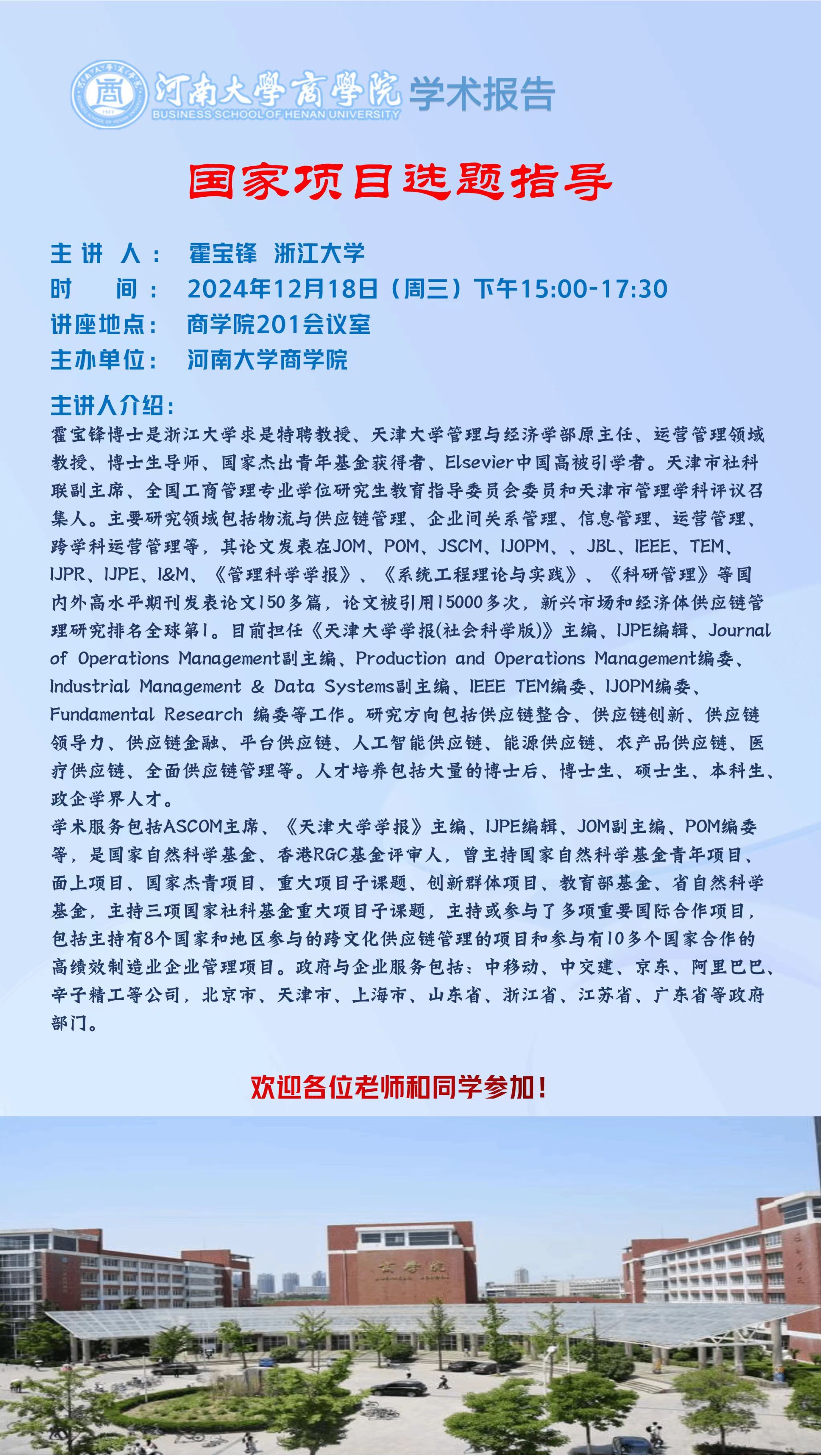 12月18日下午,浙江大学求是特聘教授、国家杰出青年基金获得者霍宝峰教授应邀来到beats365官方网站,在201会议室为青年教师们进行了国家基金项目选题指导专题讲座。