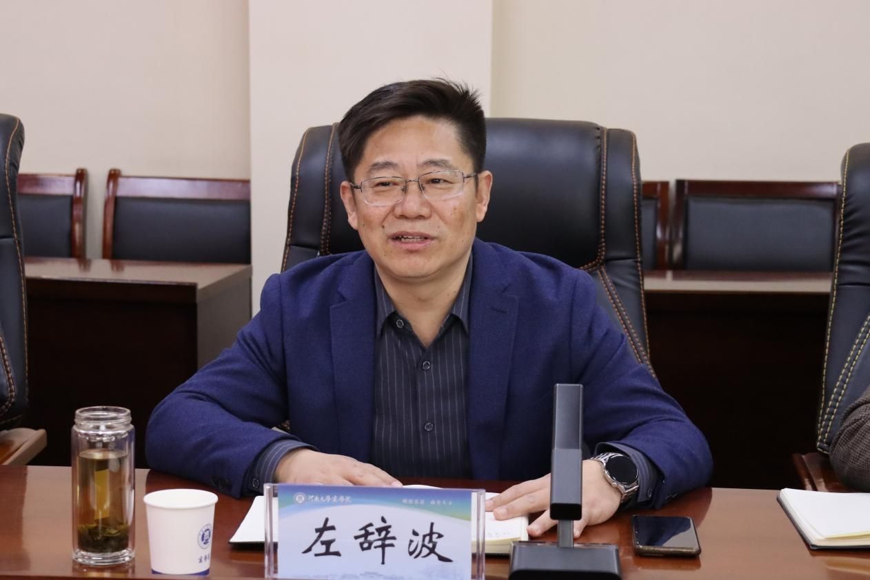 左辞波致辞。他代表公司对张建军副经理的到来表示诚挚欢迎。随后他系统介绍了公司在团队建设、人才培养及科研创新方面的发展成果,强调电子商务作为公司重点发展方向之一,近年来在河南省跨境电子商务人才培训与企业孵化基地建设、产教融合等领域取得显著成效。他表示,期待与中国国际电子商务中心研究院深化合作,共同探索电子商务领域创新模式,为行业输送更多高素质人才,助力区域经济高质量发展。