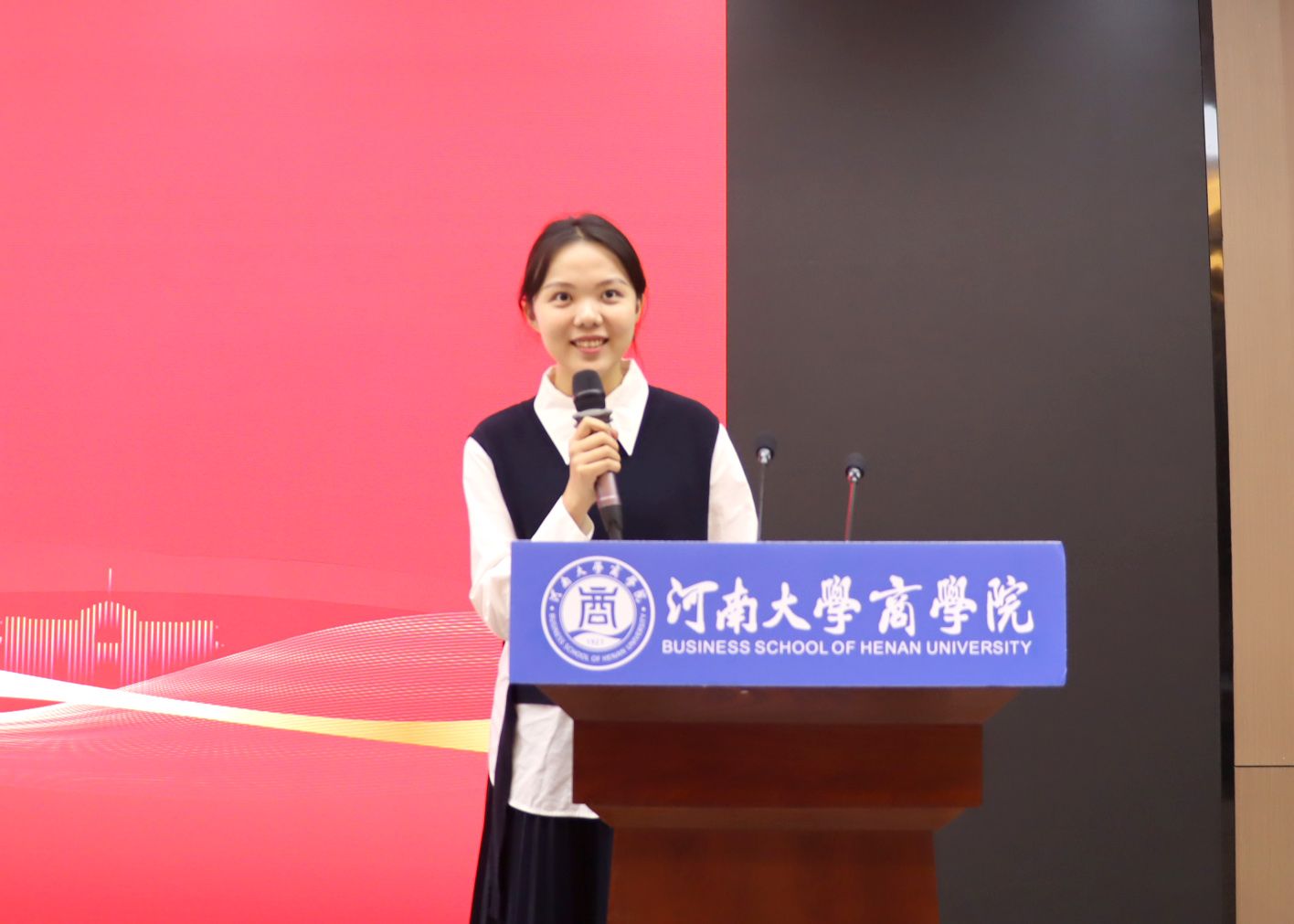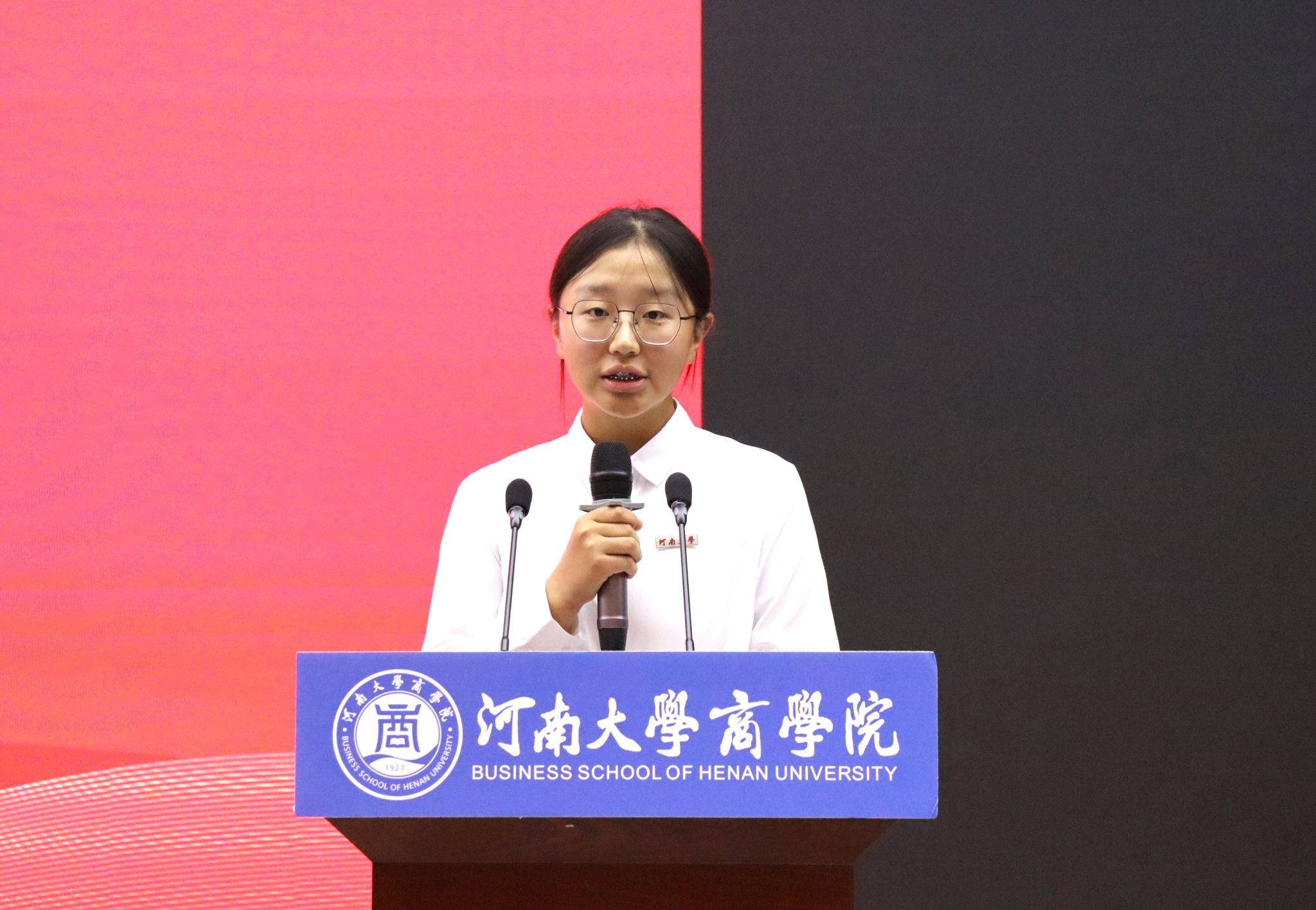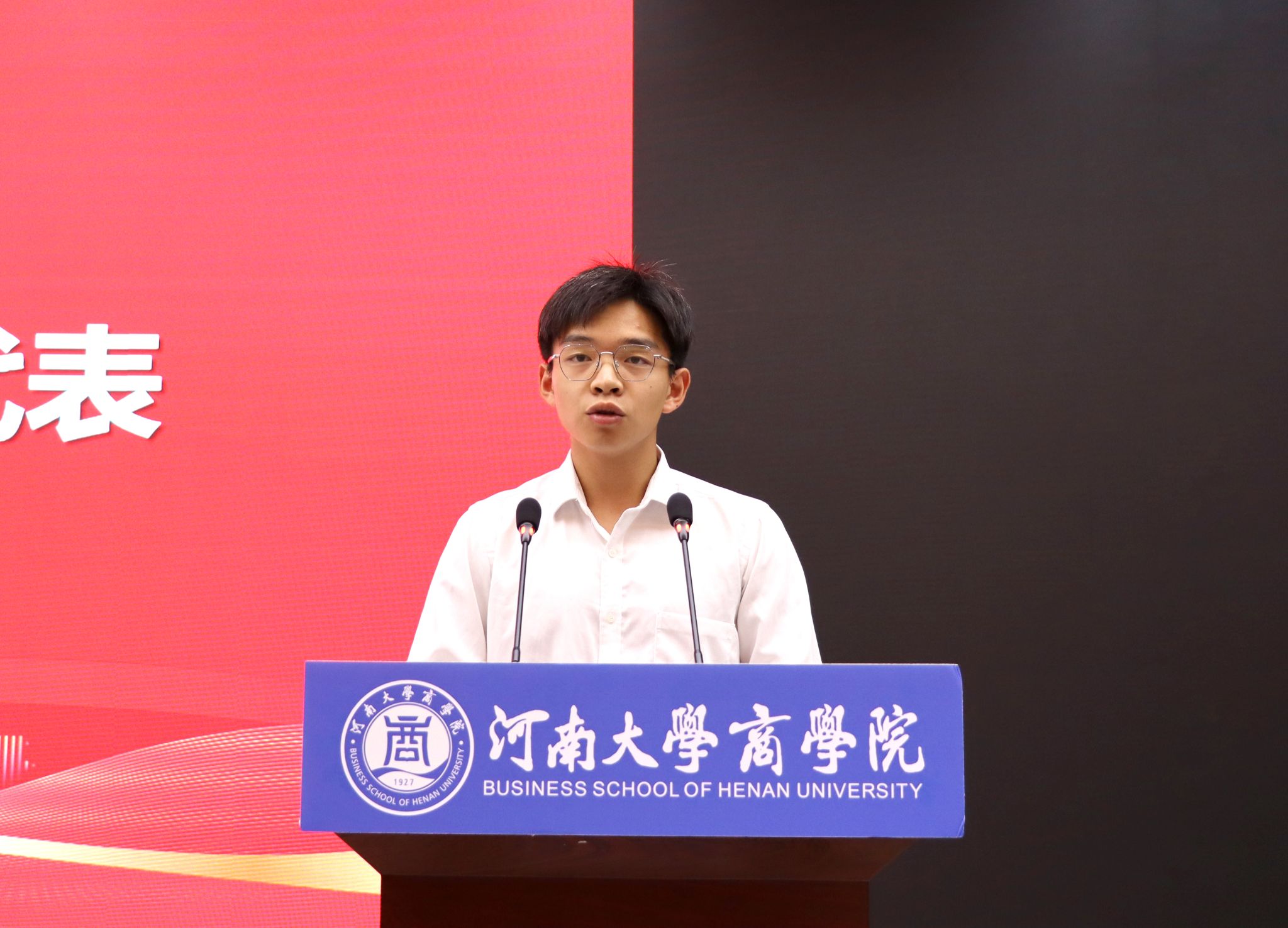 报告会由老生代表、2023级工商管理专业本科生、院员工会主席团成员肖息开启。他结合自身员工干部经历,鼓励新生珍惜大学平台,积极投身校园活动,在实践探索中实现自我超越。